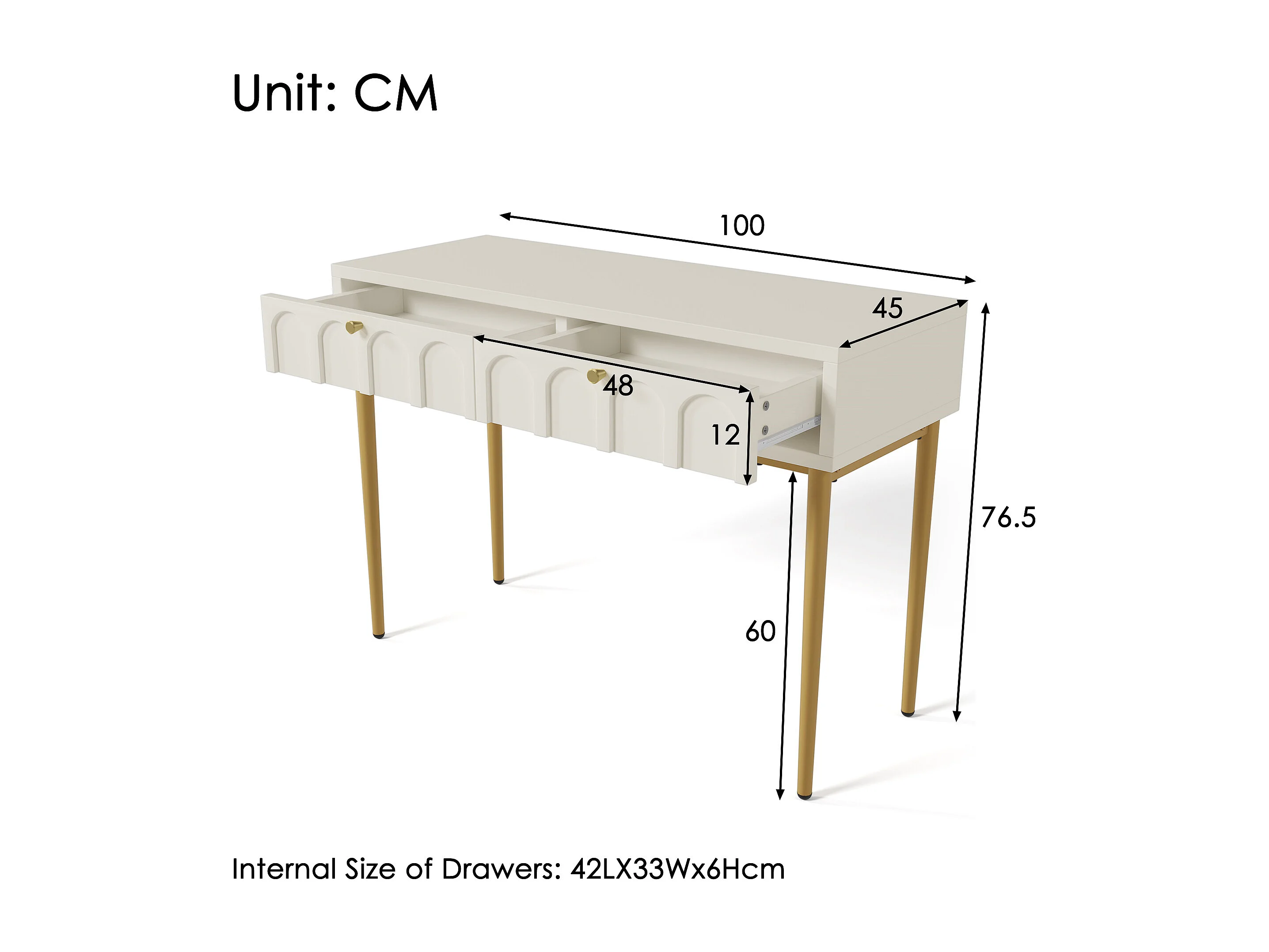 Vanité laiteuse, 2 tiroirs, plateau de chambre à coucher haut tiroir à panneaux latéraux blancs - h76.5 / B100 / t45cm
