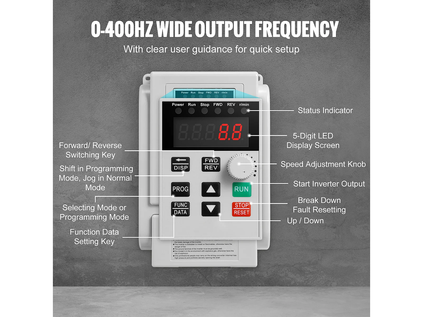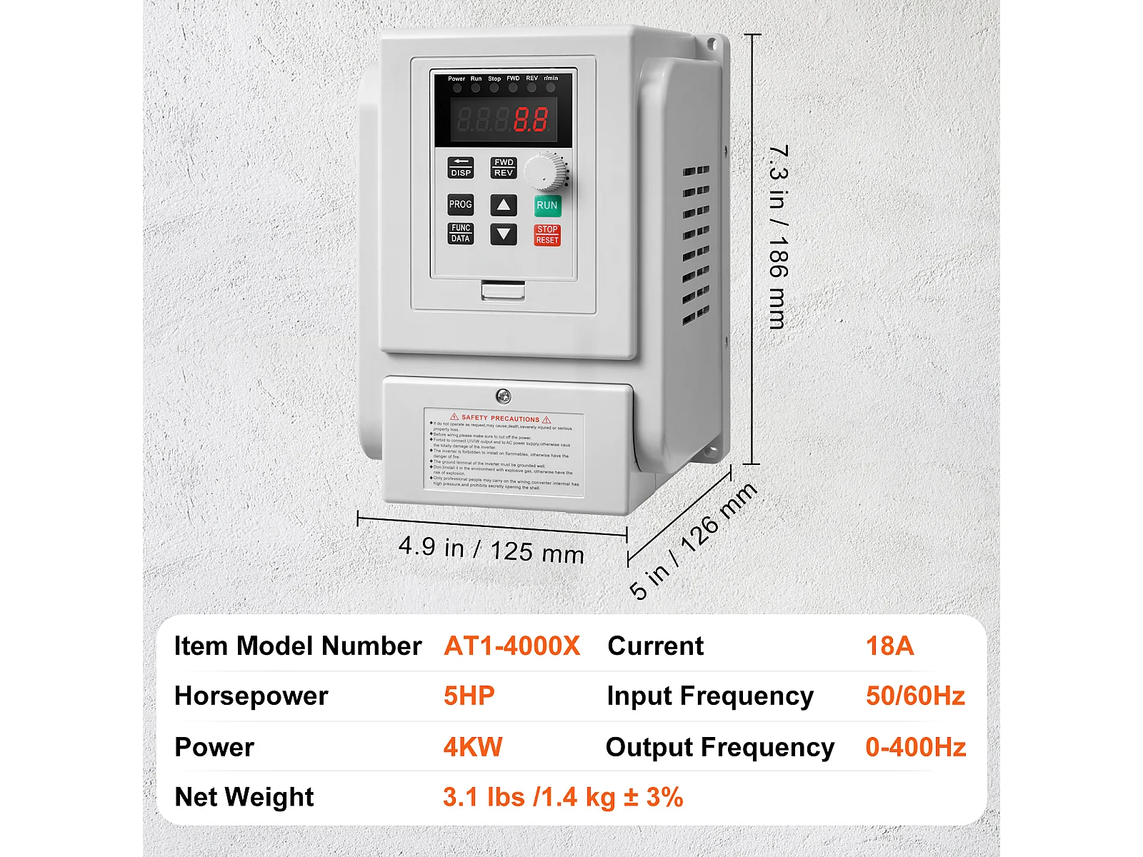 Variateur de Fréquence SucceBuy VFD 4KW 18A 5HP pour Contrôle de Vitesse de Moteur Triphasé