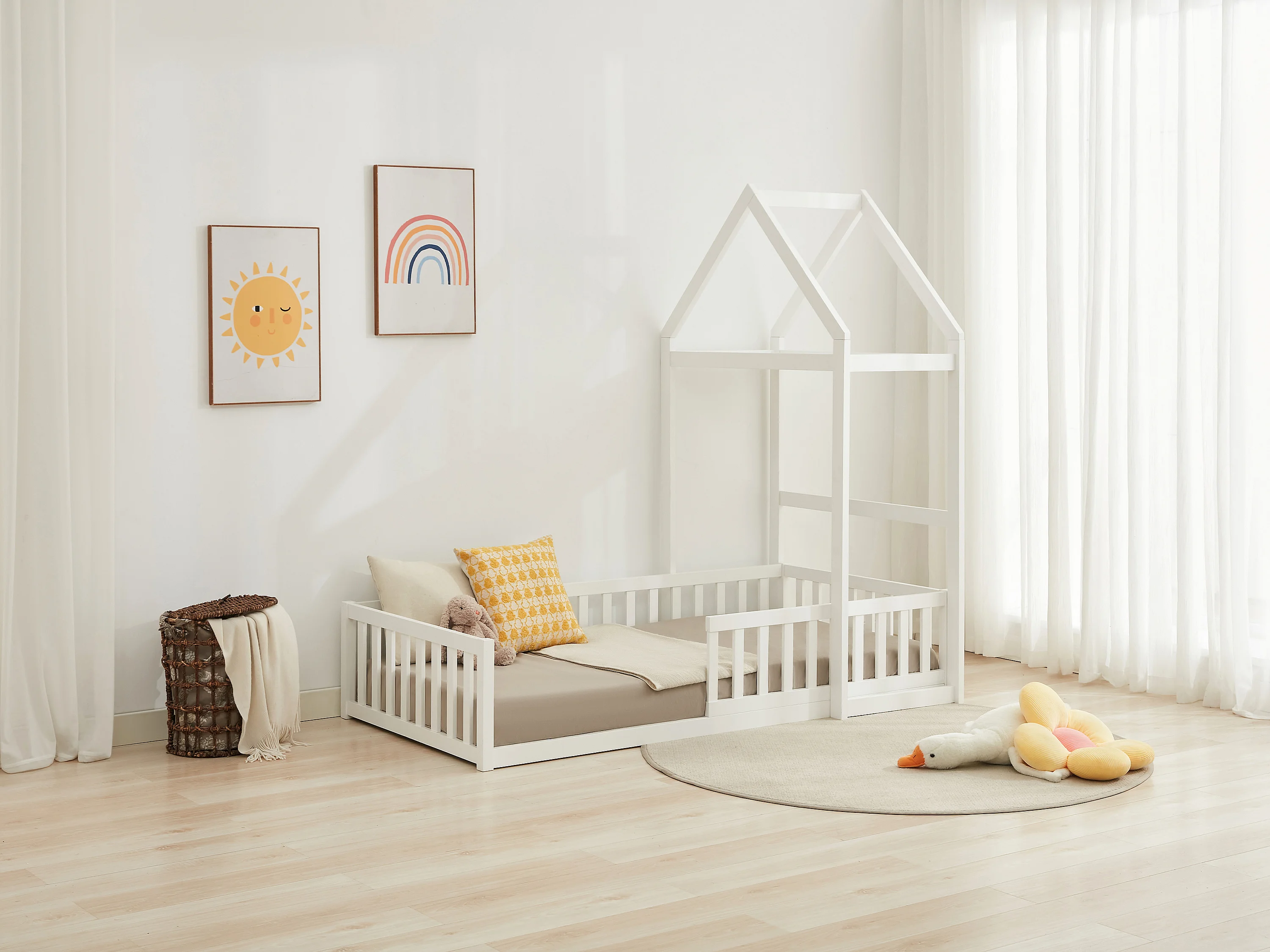 Lit cabane Kiwi 90x190 avec sommier et matelas /Blanc