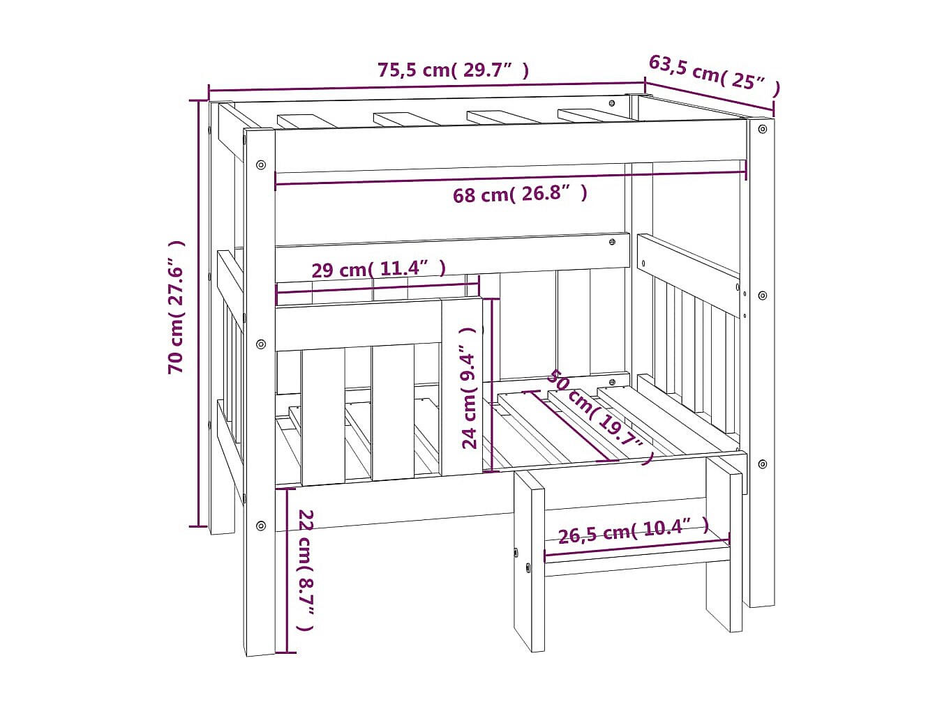 Varyn Lit pour cen Gris 65,5x50,5x70 cm Bois de pin solide