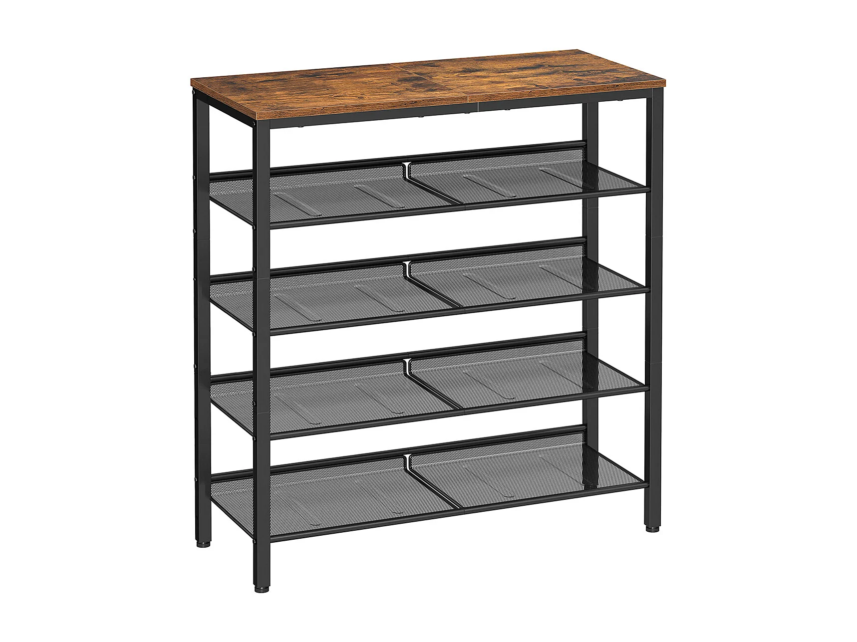 VASAGLE Rack à chaussures à 5 niveaux, grand rangement pour chaussures avec 4 étagères en maille et un grand plateau pour les sacs, gain de place pour l'entrée, le
