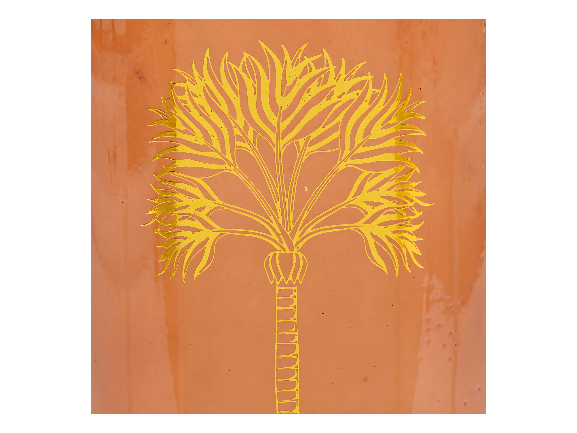 Vase bouteille en verre Ambre motif Palmier doré H 21.5 cm