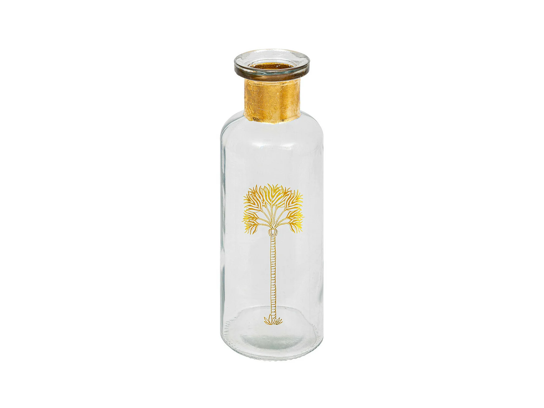 Vase bouteille en verre Transparent motif Palmier doré H 21.5 cm