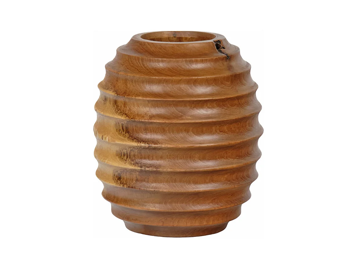 Vase décoratif H. 18 cm en bois de teck massif - HERA M