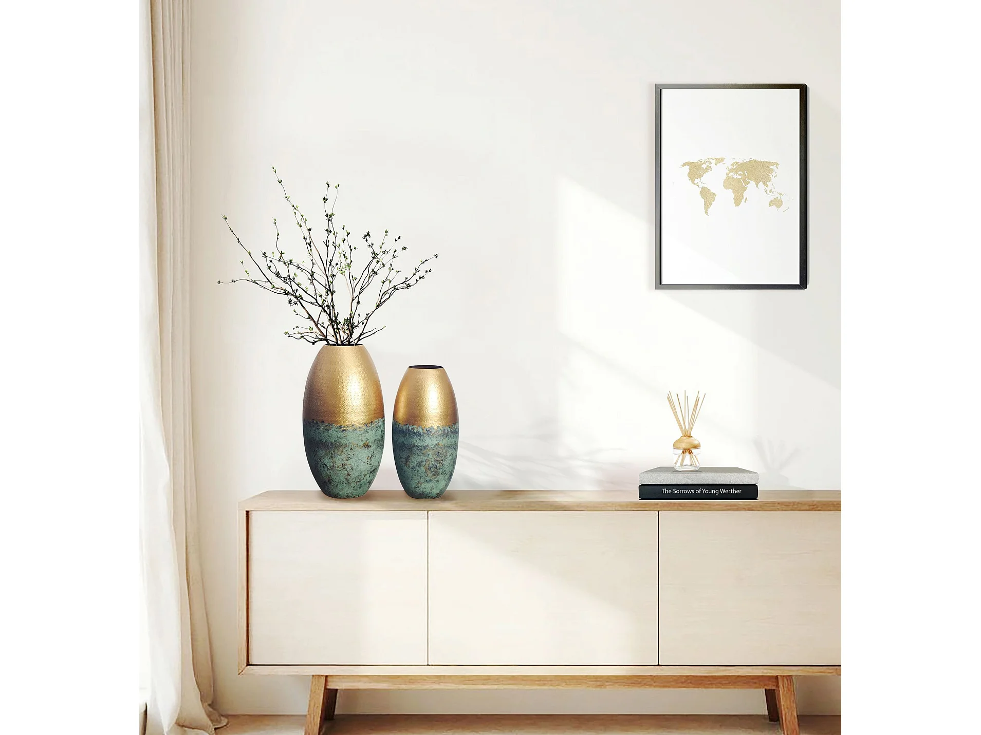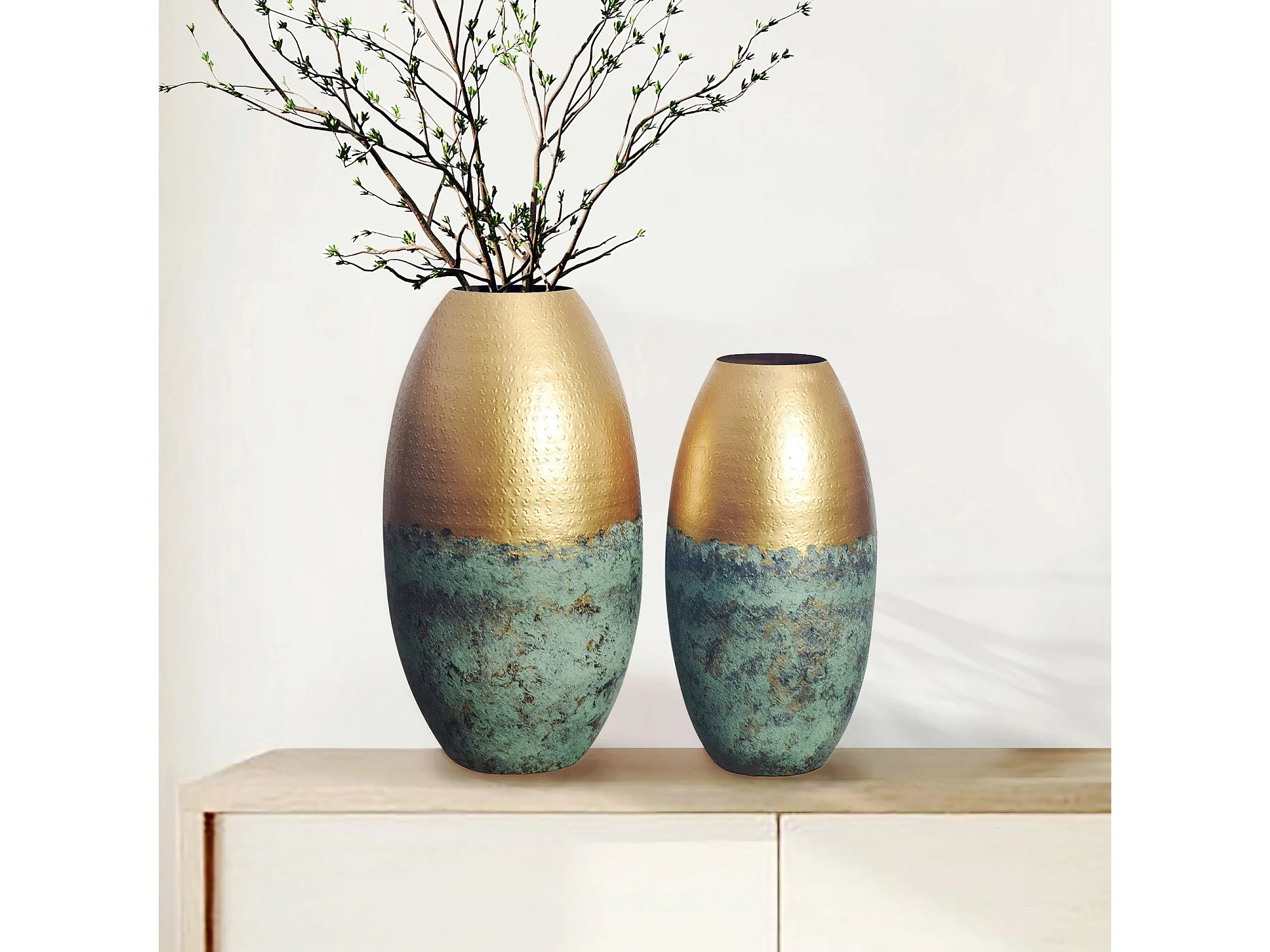 Vase Décorative Lot de 2 Aluminium Or Patiné Fleurs Décoration Moderne