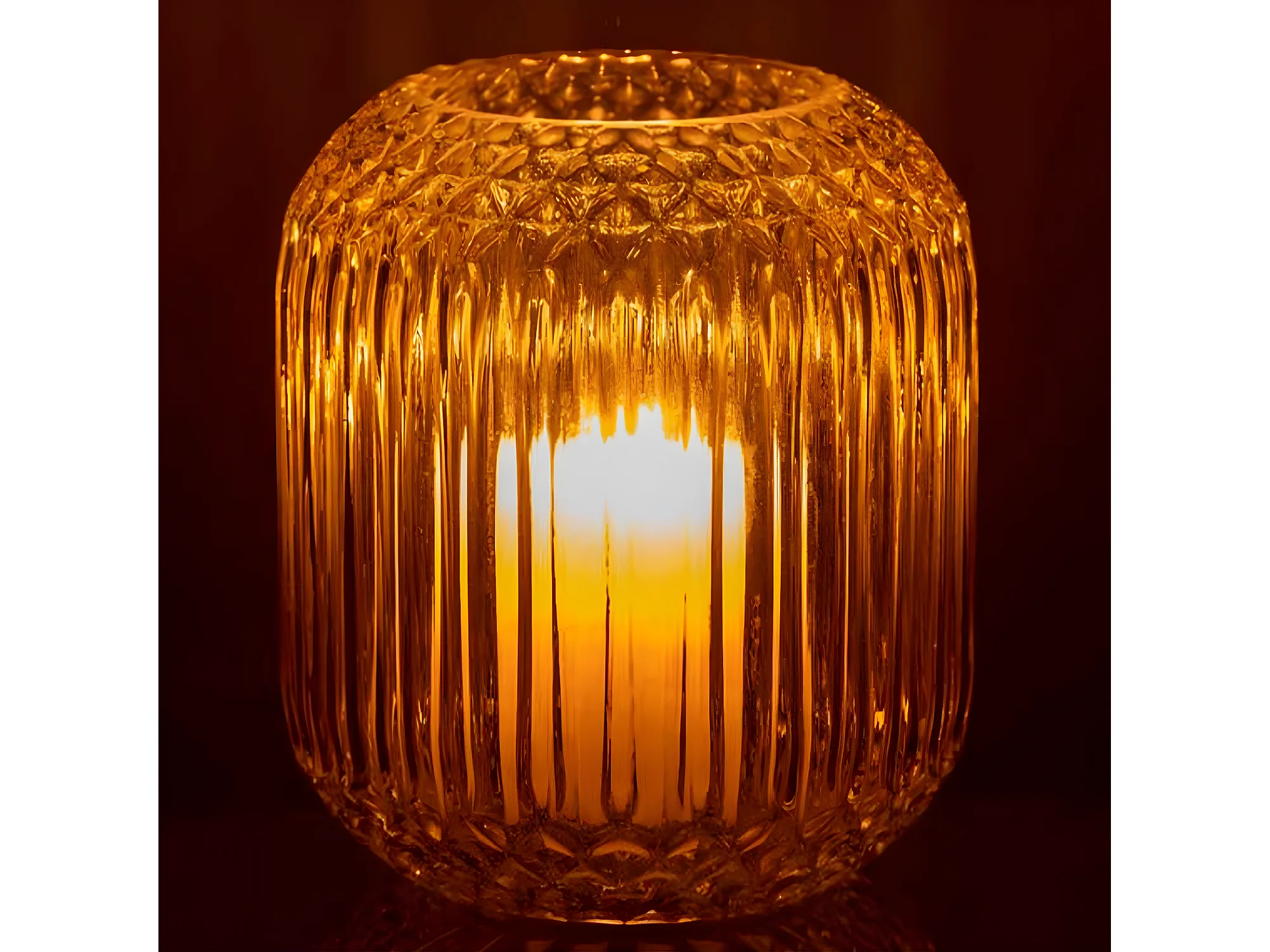 Vase Rond Design en Verre "Laura" 47cm Ocre