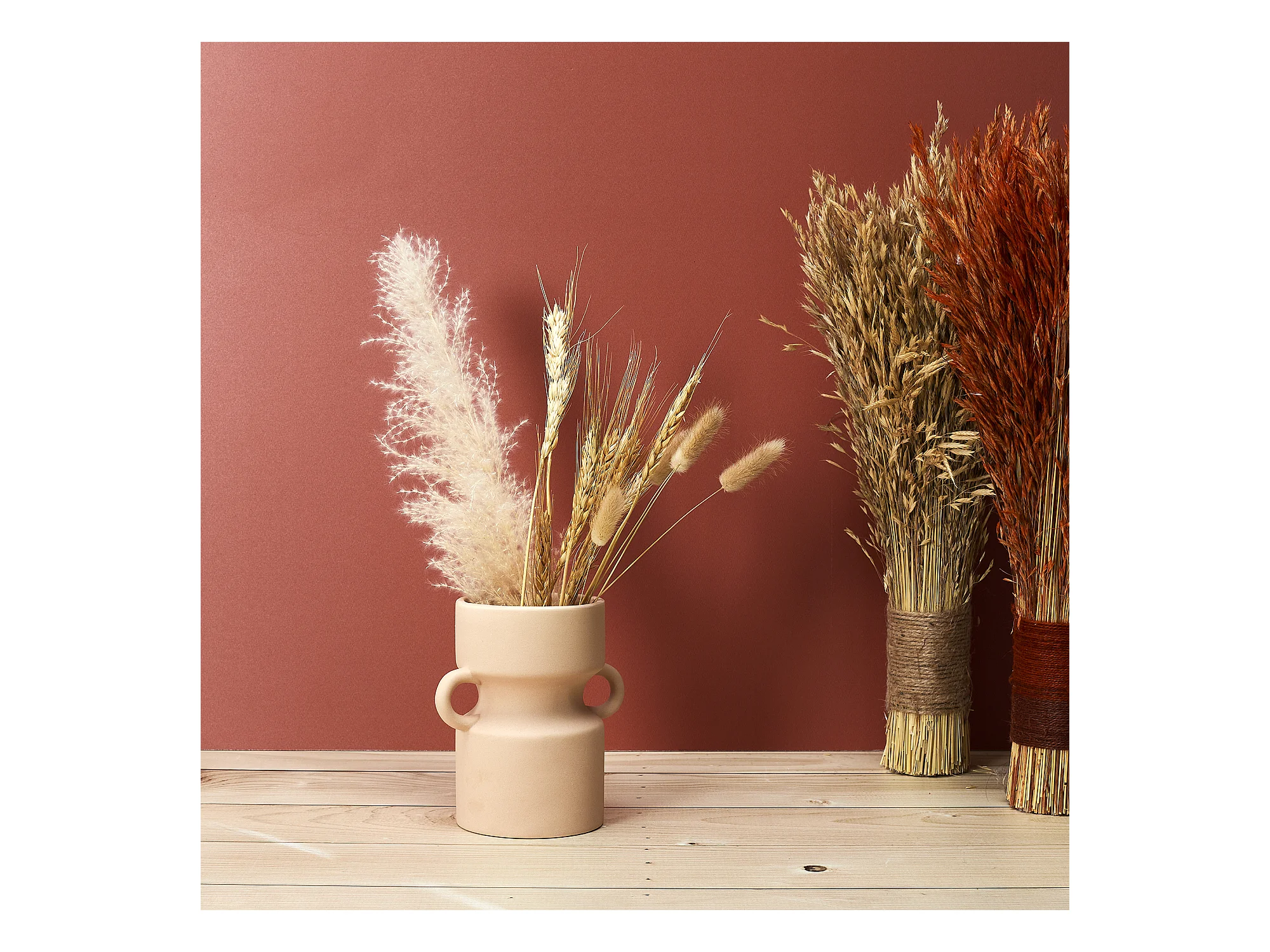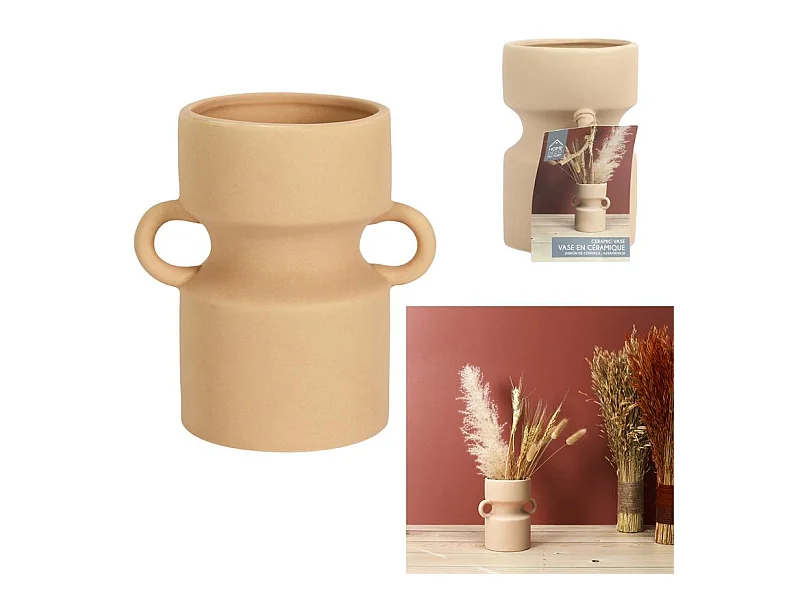 Vase Amphore en Céramique Marron cannelle H 20 cm