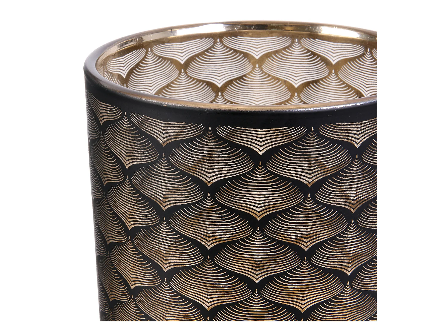 Vase Cylindrique en Verre Noir et Cuivre à Motifs - MAURY