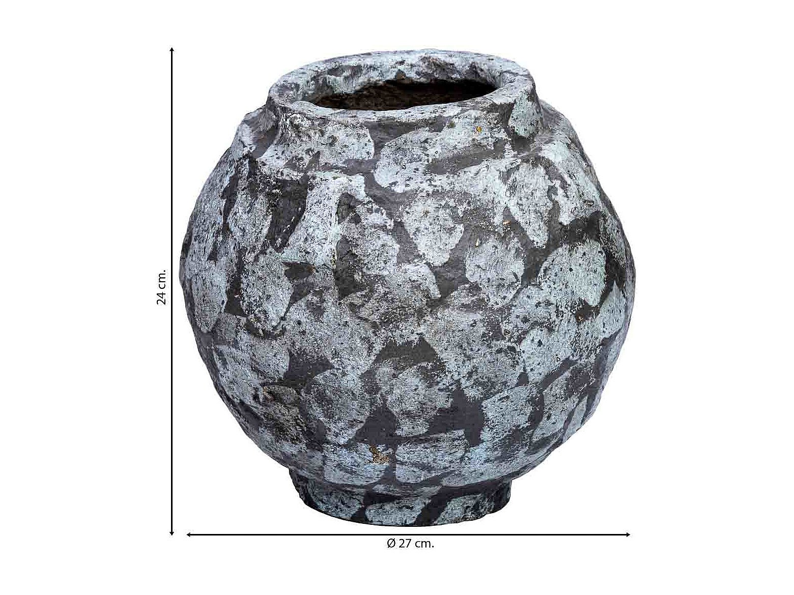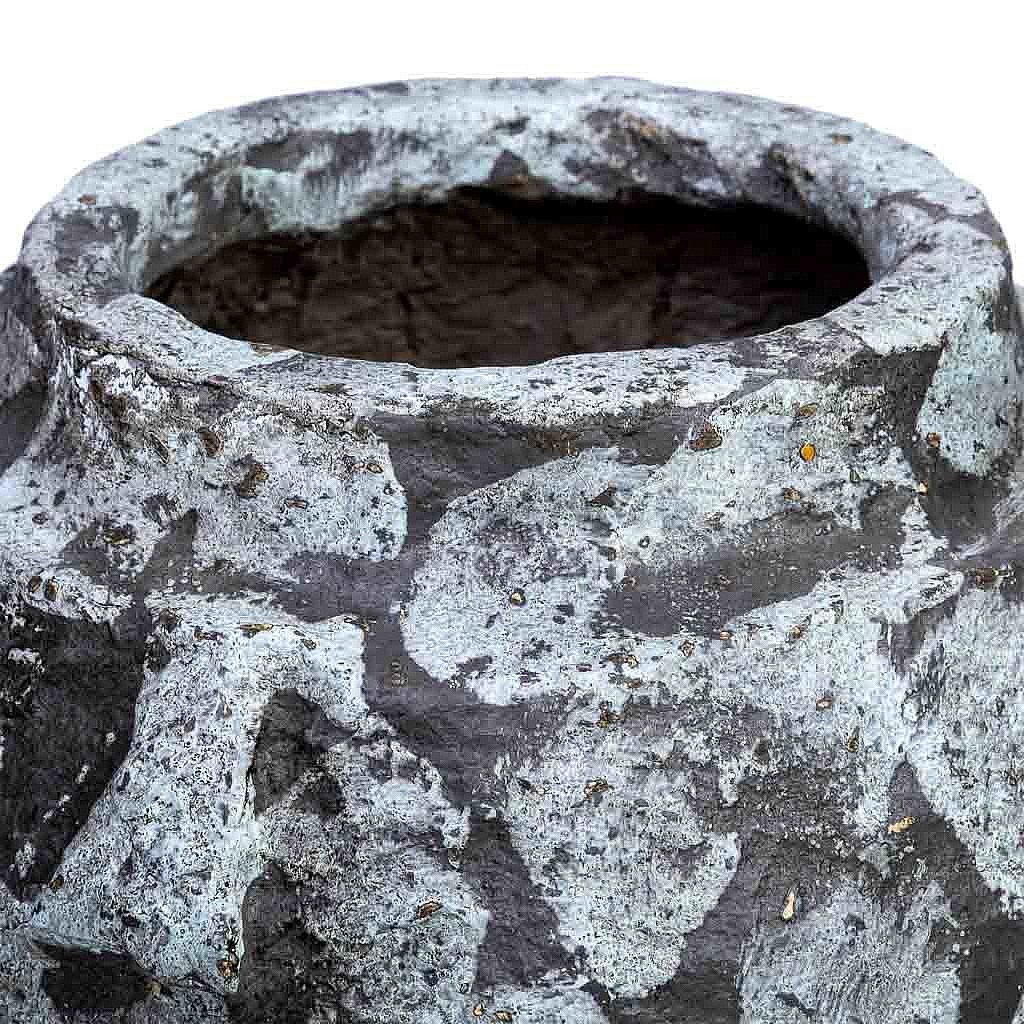 Vase en papier mâché finition artisanale gris antique 27x27x24h cm