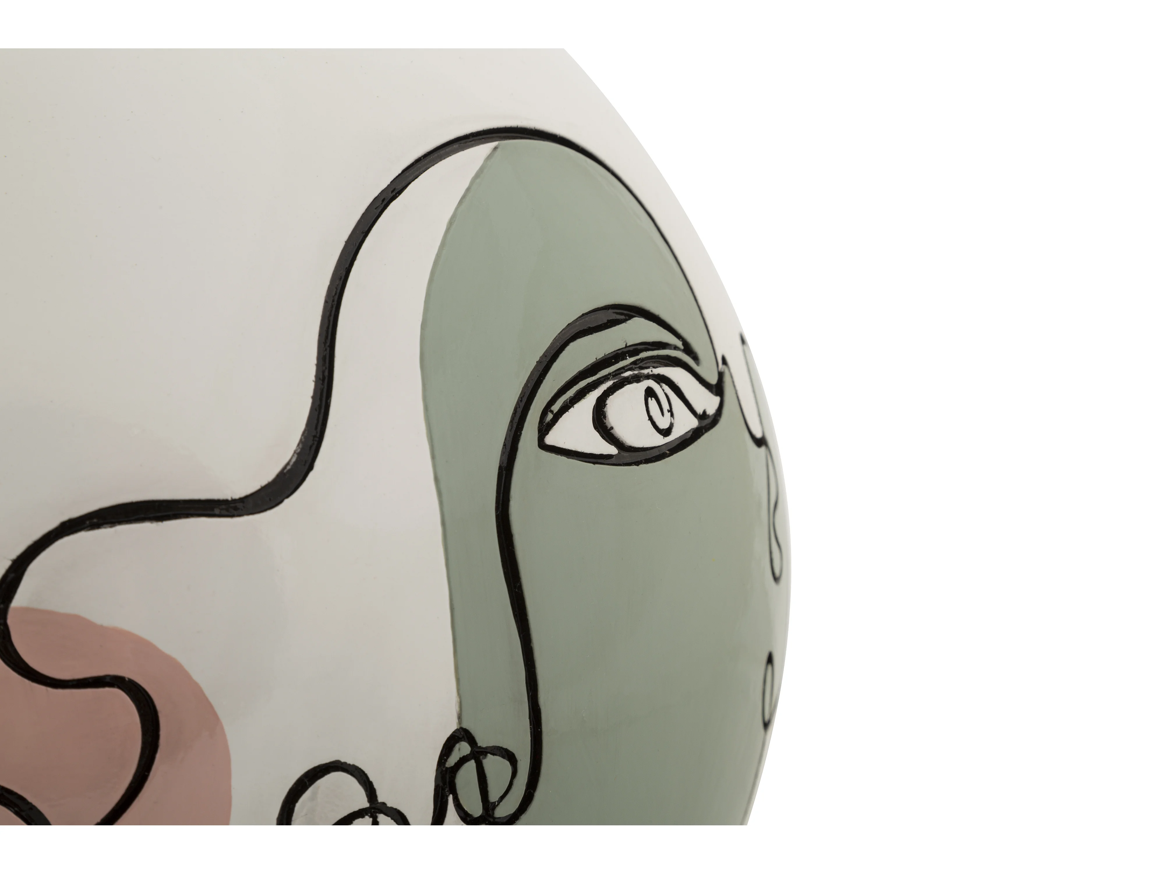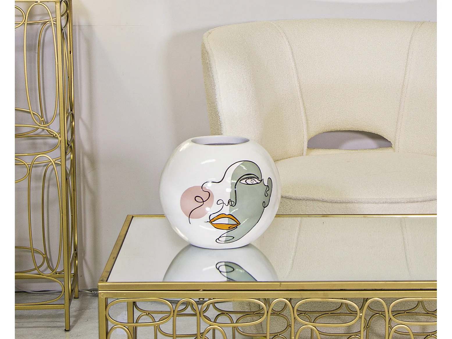 Vase en résine blanche face peinte Ø 25,5x22 cm