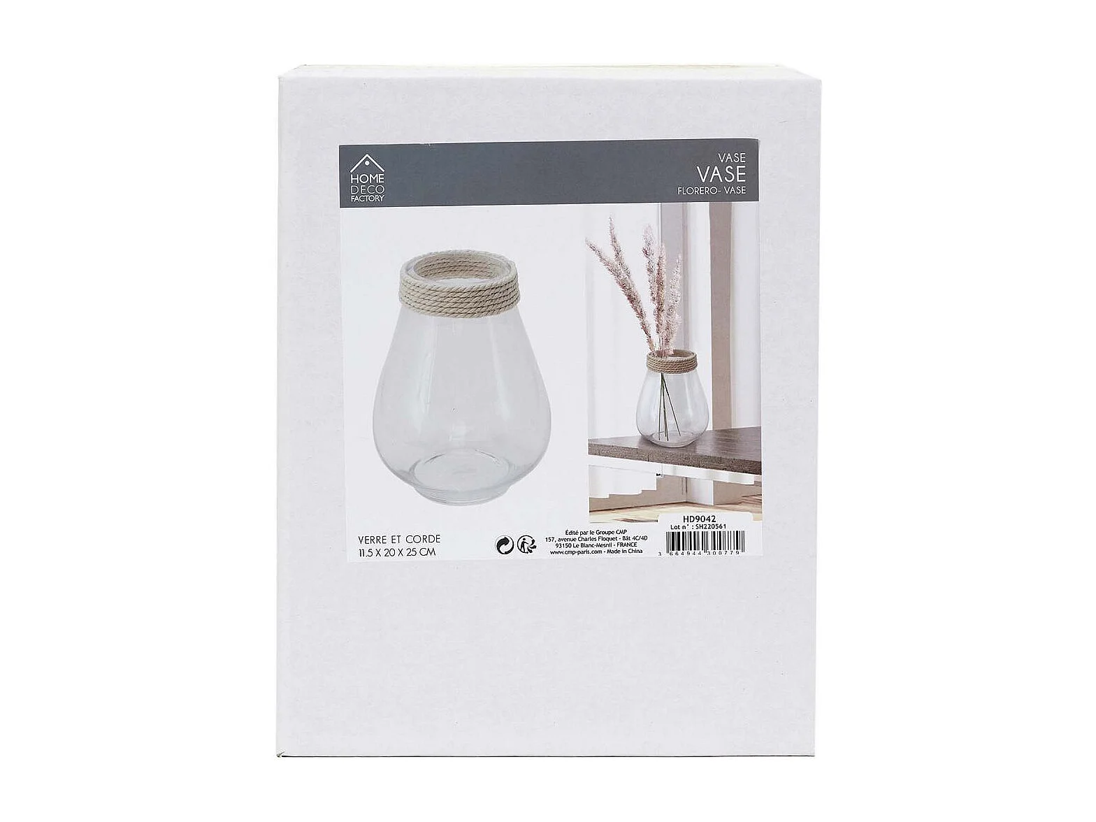 Vase Verre Avec Cordage 25cm Transparent, Beige