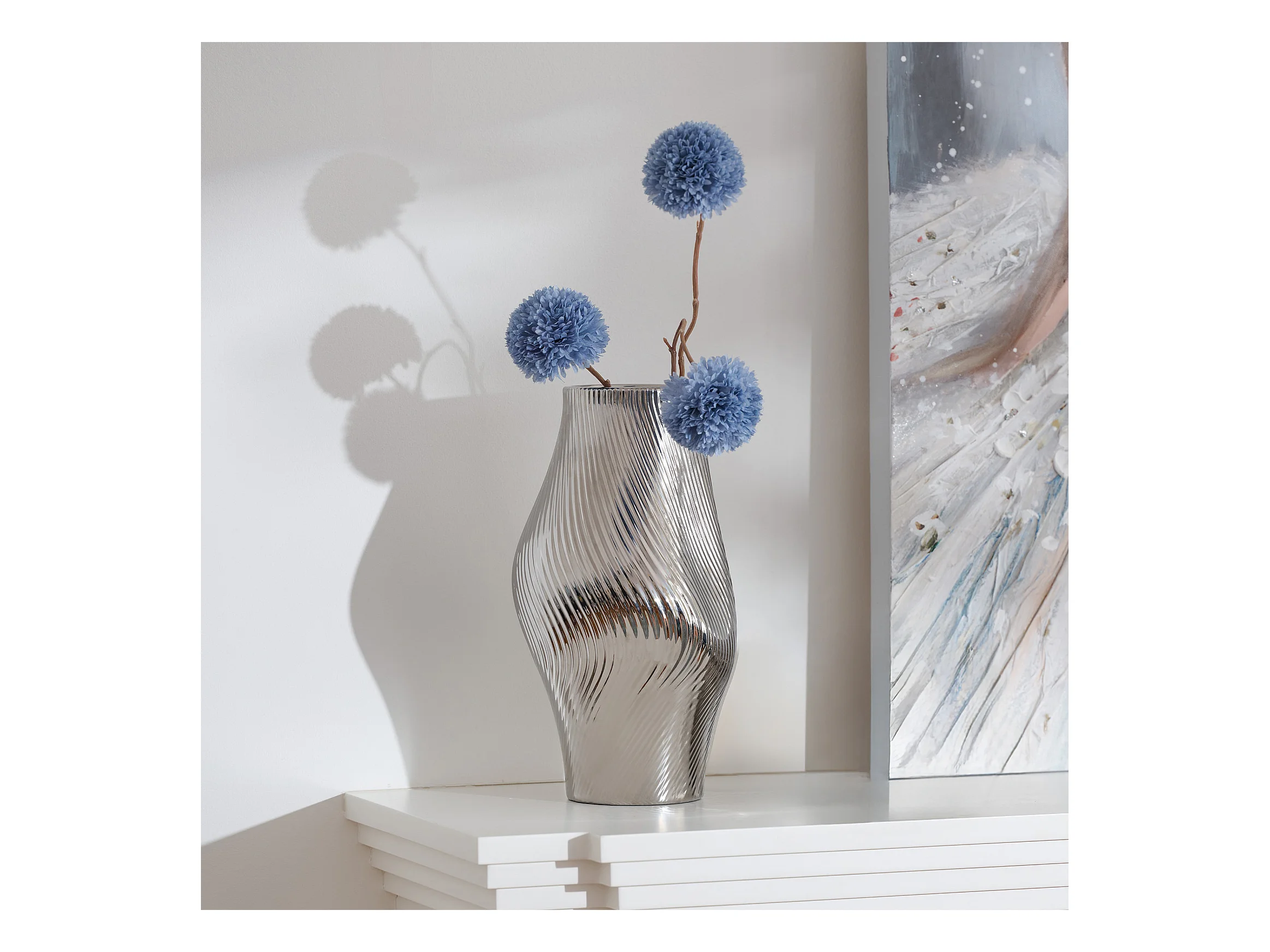 Vase en céramique argentée 16x16x20h