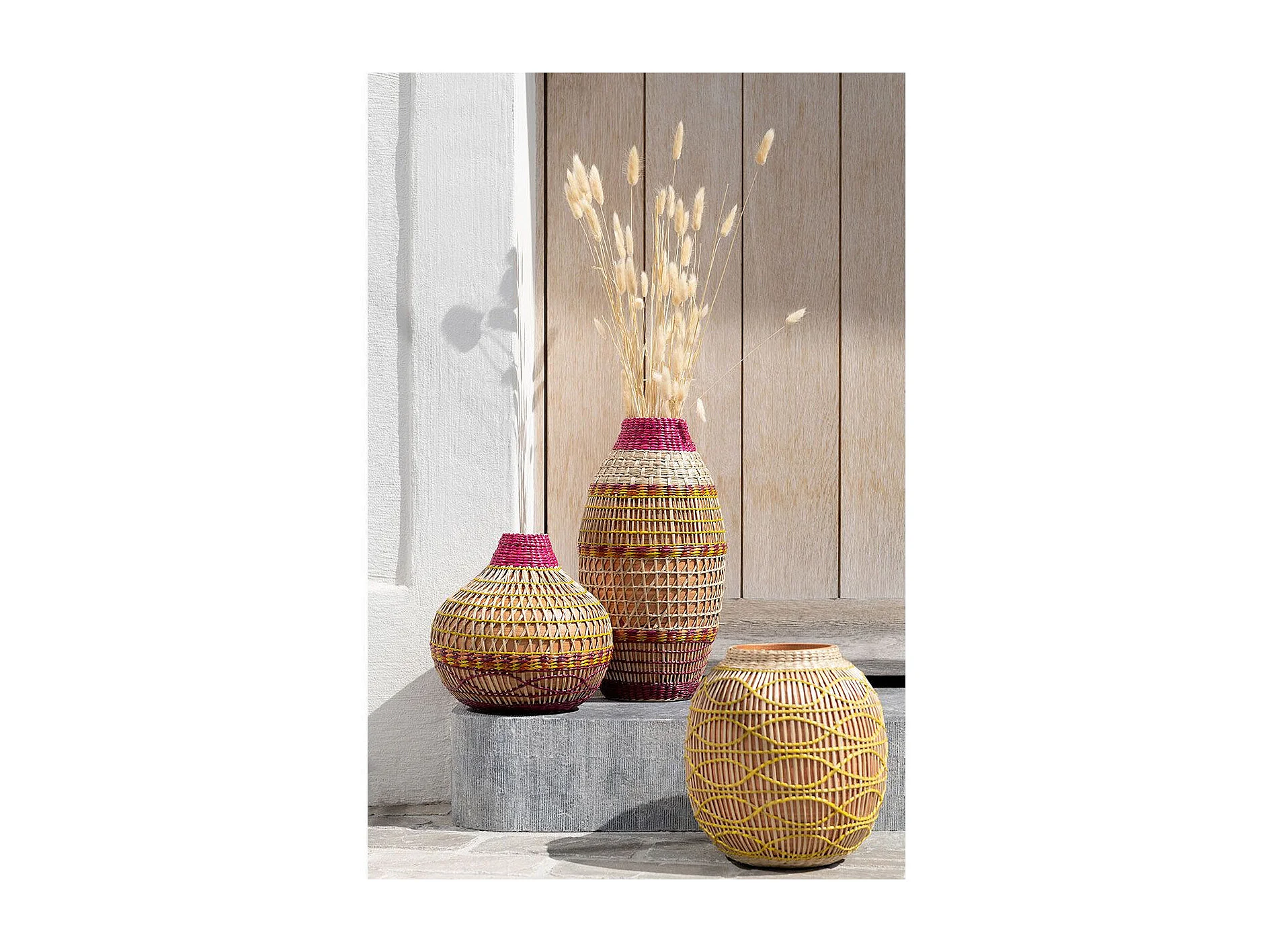 Vase en fibres naturelles tréssées H 35 cm