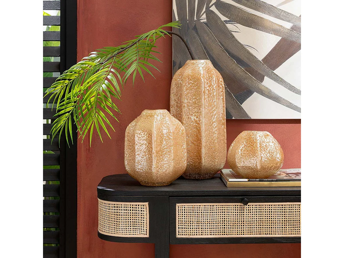 Vase bouteille en verre Ambre motif Palmier doré H 21.5 cm