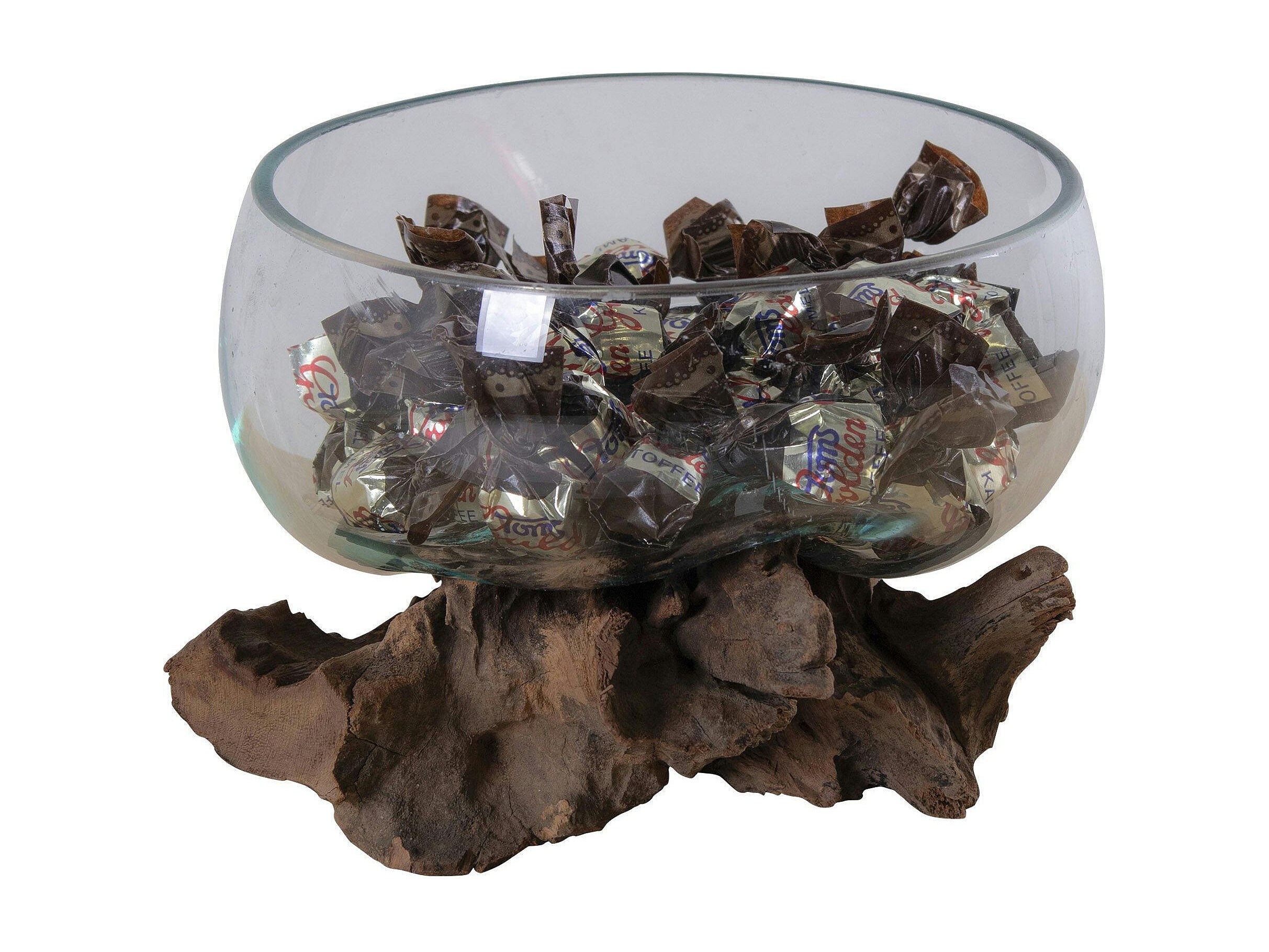 Vase verre soufflé et racine teck, artisanal H 15 cm ARIZONA