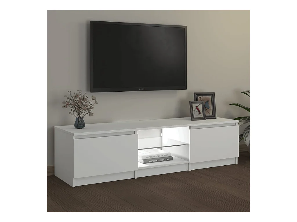 Vasil Meuble TV avec lumières LED blanc 140x40x36 cm