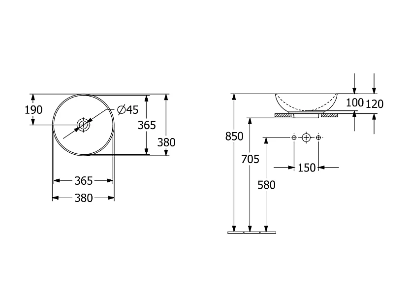 Vasque 38 x 38 ronde à poser VILLEROY ET BOCH Loop & Friends non meulé stone white avec trop plein