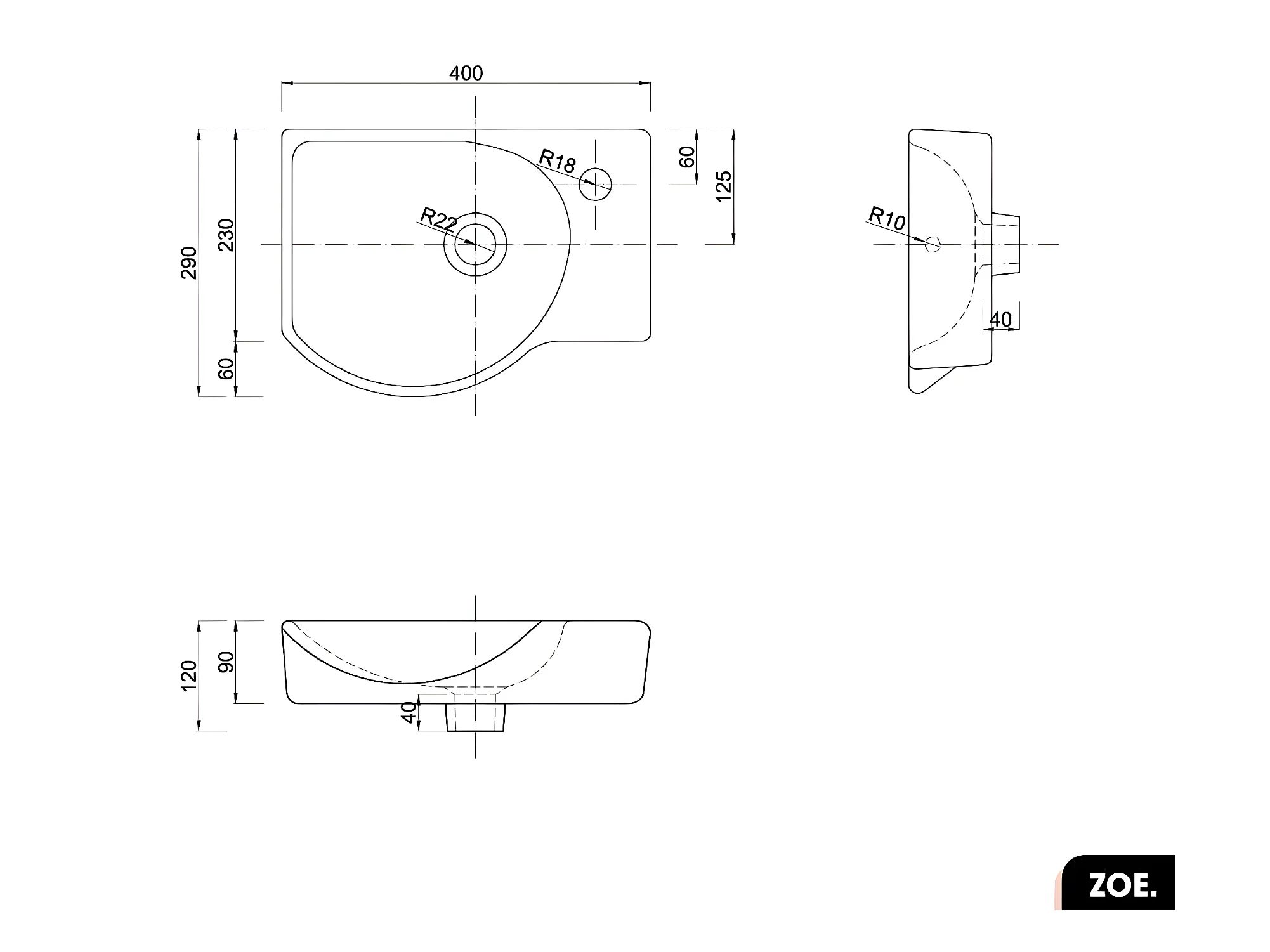 Vasque à encastrer avec siphon OFFERT | ZOE | Blanc | 40 × 9 × 29