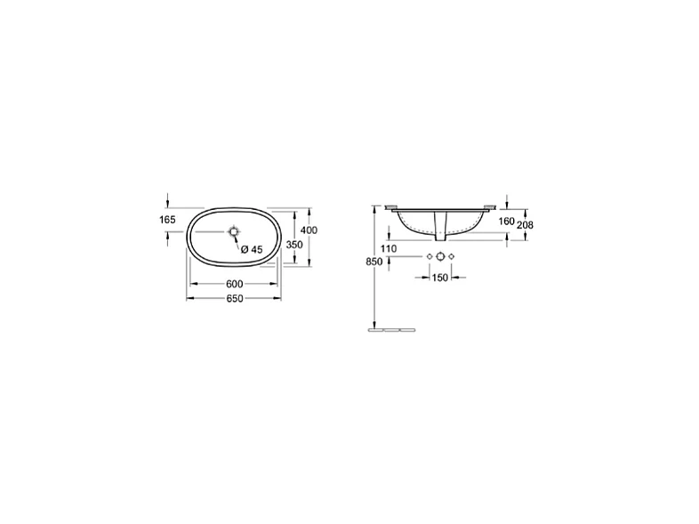 Vasque à encastrer par dessous VILLEROY ET BOCH O.Novo 60 x 35 cm