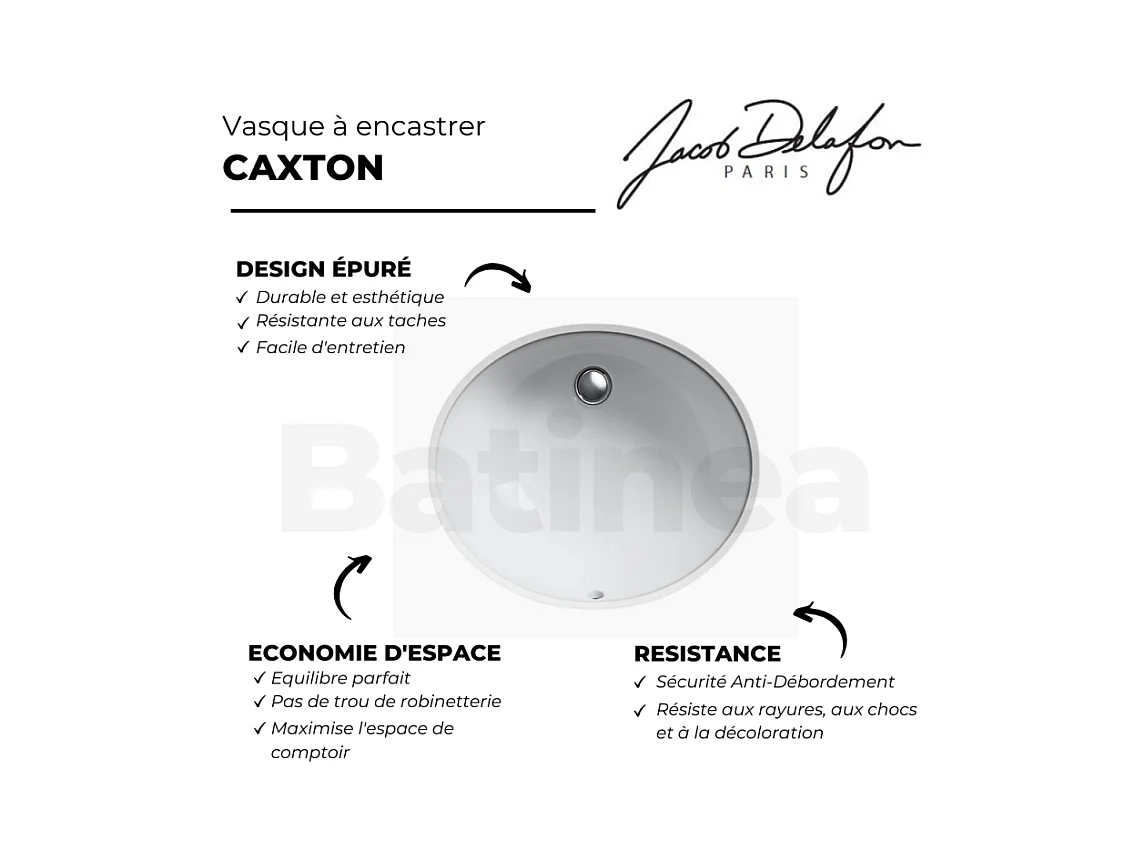 Vasque à encastrer par le dessous 55 cm JACOB DELAFON Caxton