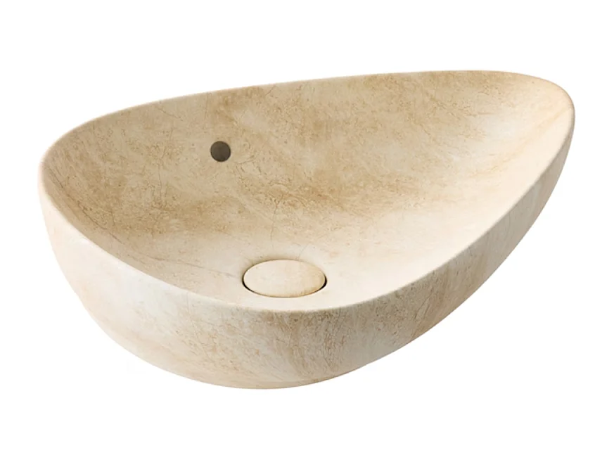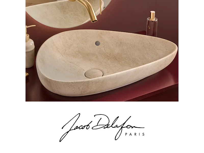 Vasque à poser asymétrique JACOB DELAFON Nouvelle Vague effet marbre travertin sable