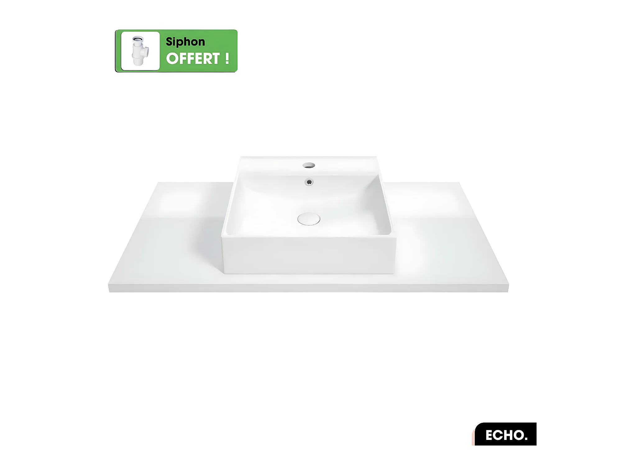 Vasque à poser avec siphon OFFERT | ECHO | Blanc | 40 × 10 × 40