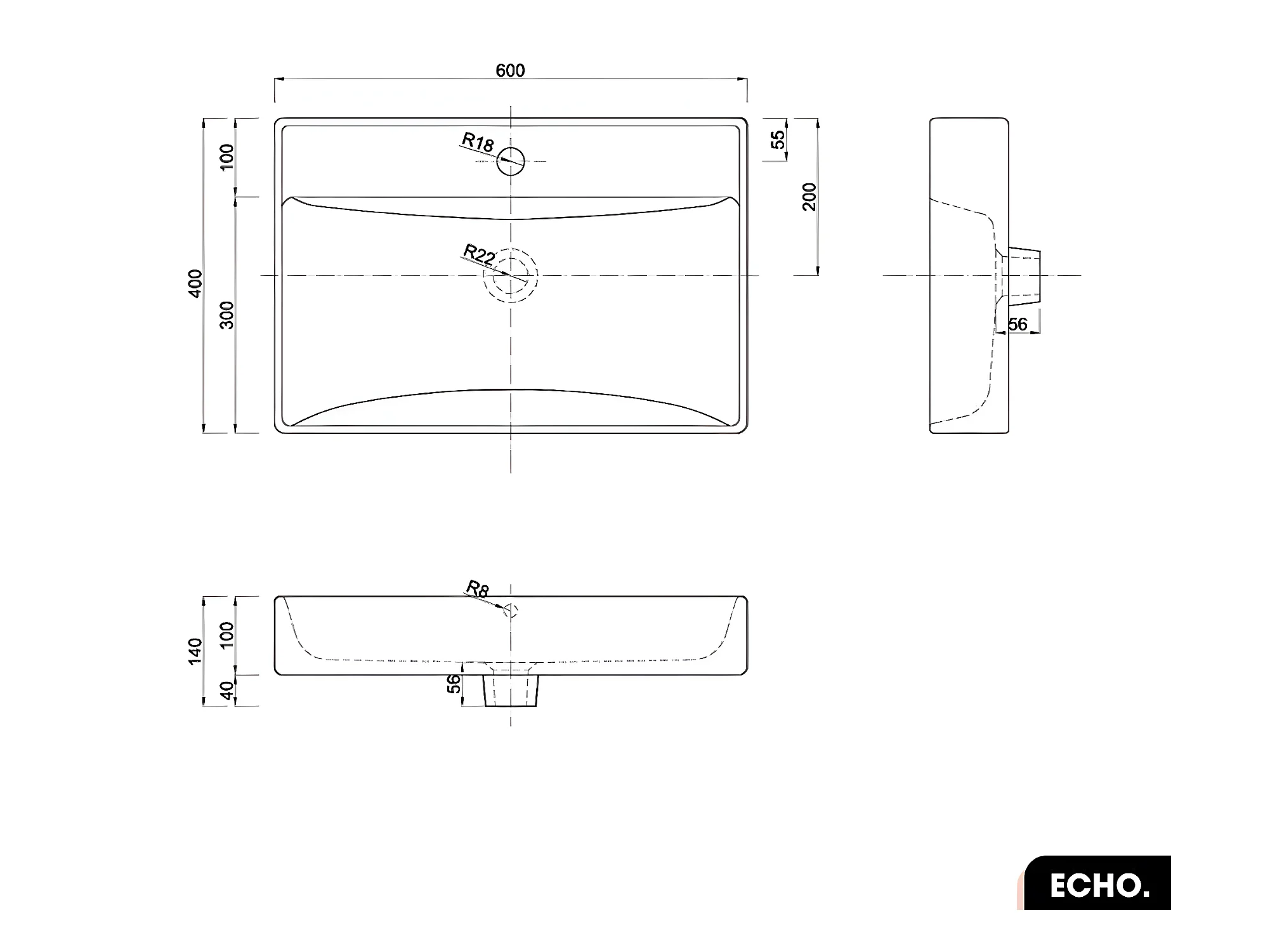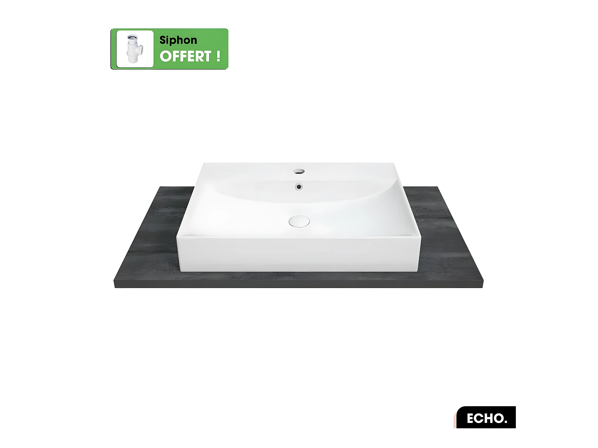 Vasque à poser avec siphon OFFERT | ECHO | Blanc | 60 × 10 × 40