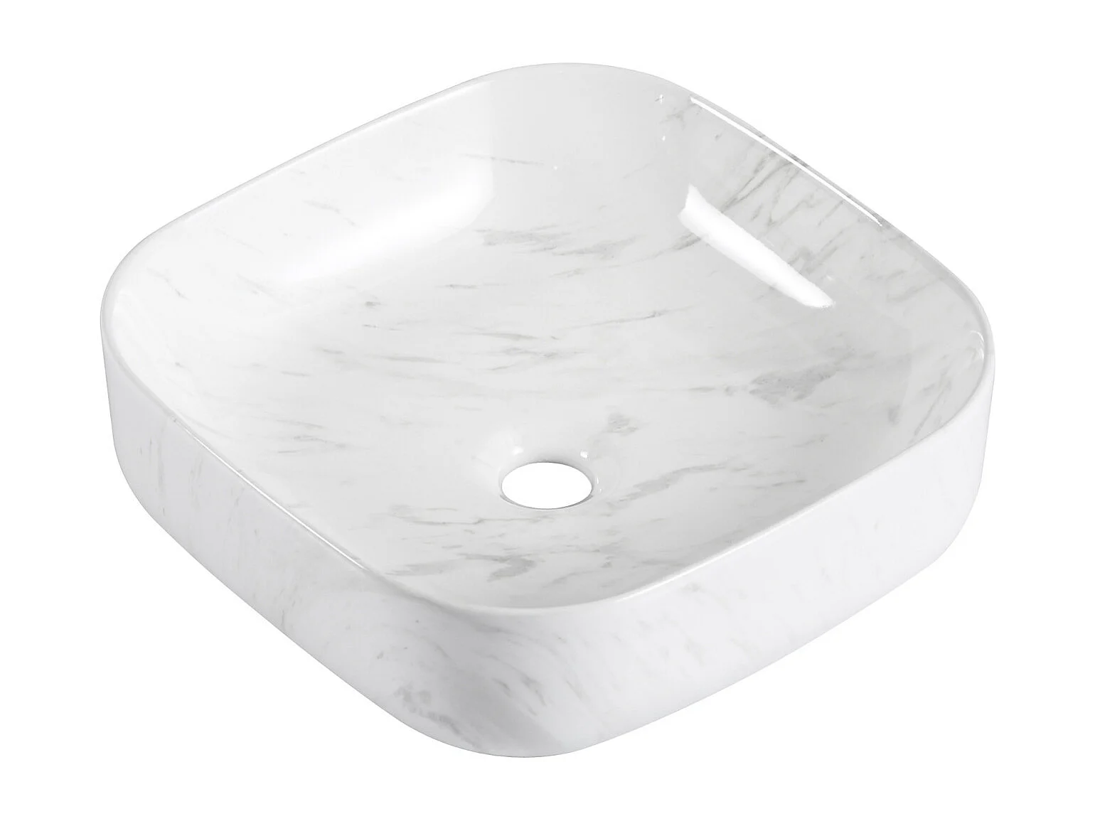 Vasque à poser DIANE carrée en céramique effet marbre blanc 37cm