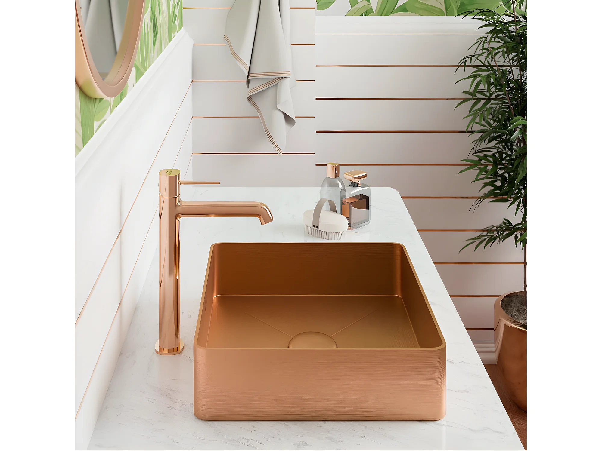 Vasque À Poser en acier inoxydable carre Rose Doré avec bonde clic-clac