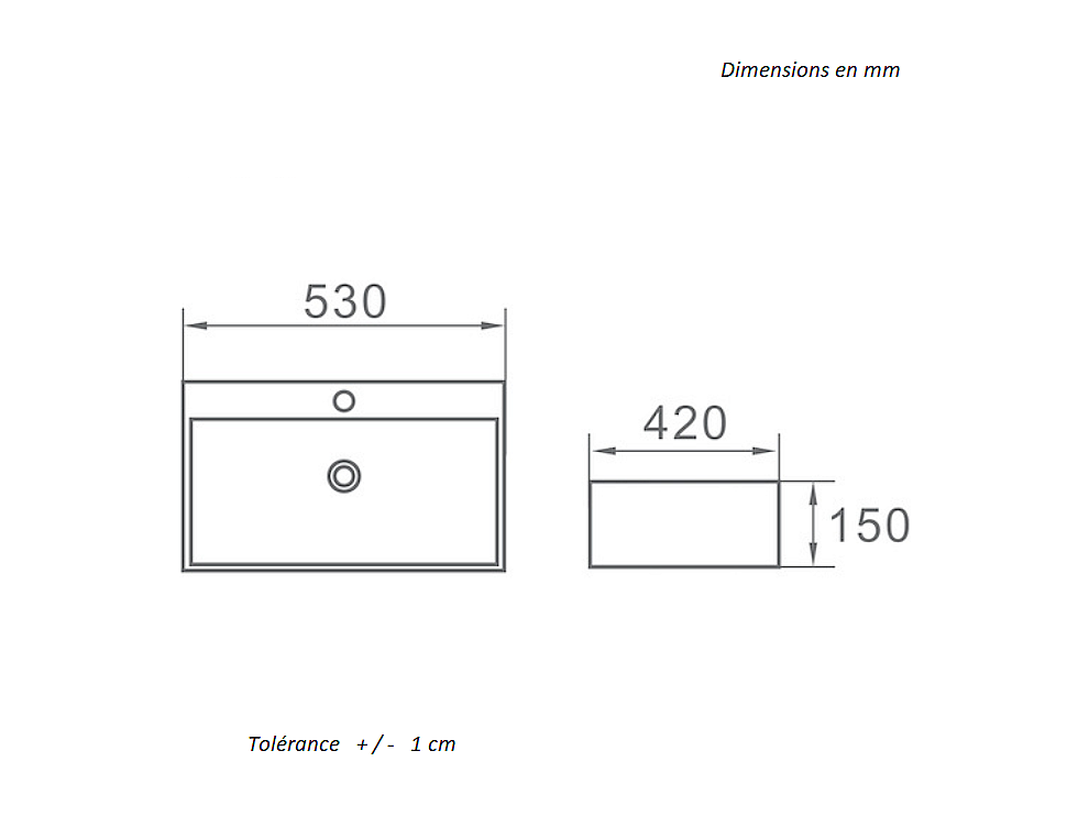 Vasque à poser rectangulaire en céramique CORRIENTES 53 x 42 cm