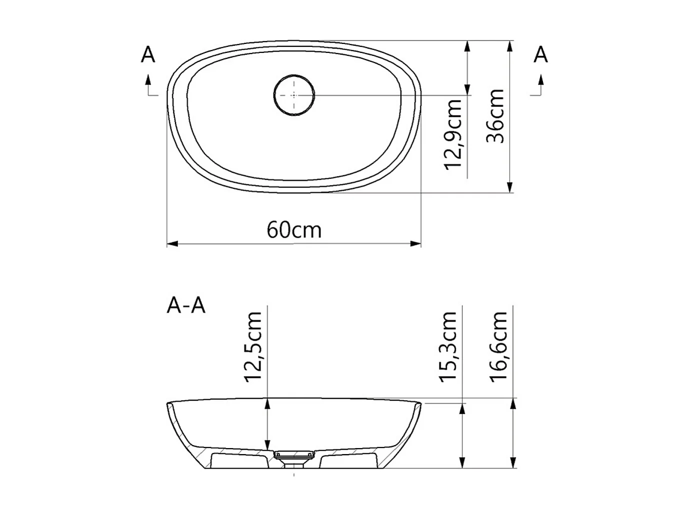 Vasque à poser FRODE - 75% Minéral Gris Mat Asymétrique 60*36*H16.6cm - LAVABERG