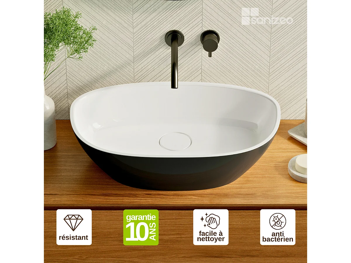Vasque à poser FRODE - 75% Minéral Noir/Blanc Brillant Asymétrique 60*36*H16.6cm - LAVABERG