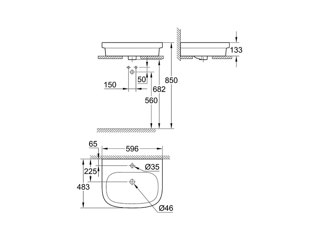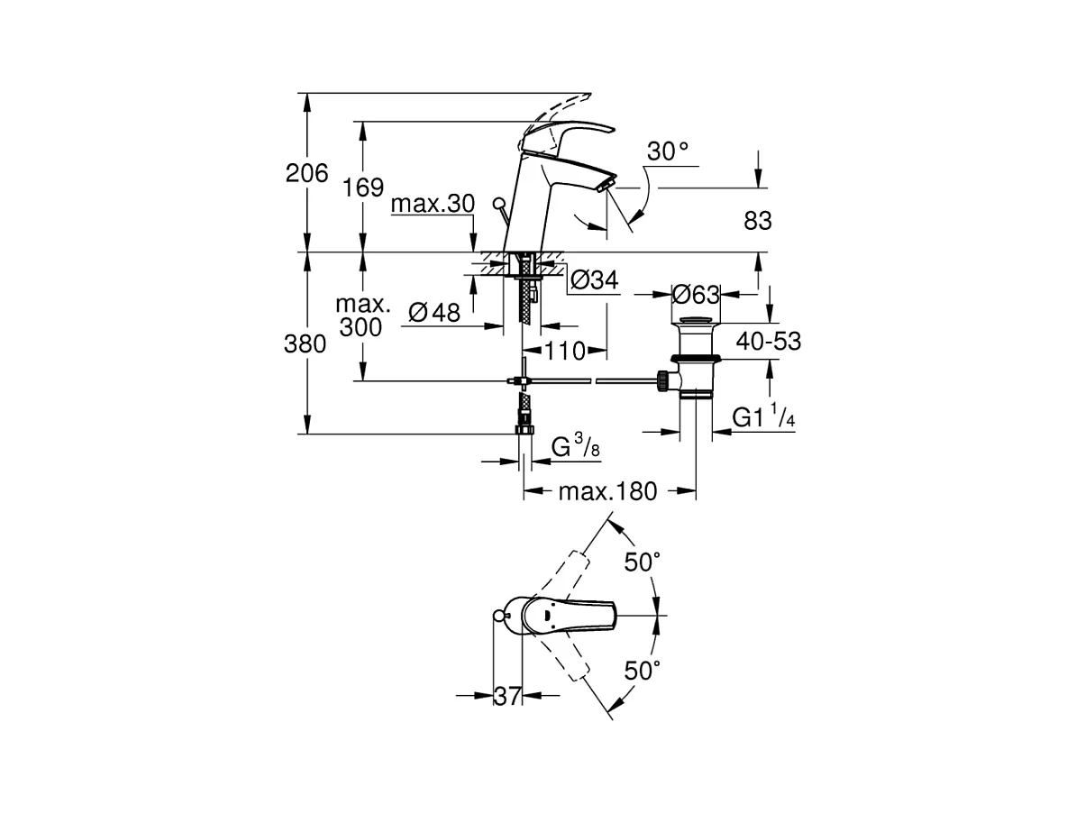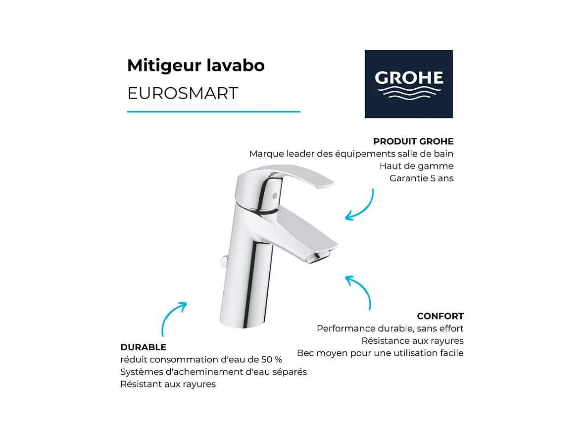 Vasque à poser GROHE Euro Ceramic 60cm + Mitigeur lavabo M GROHE Eurosmart avec vidage Chromé