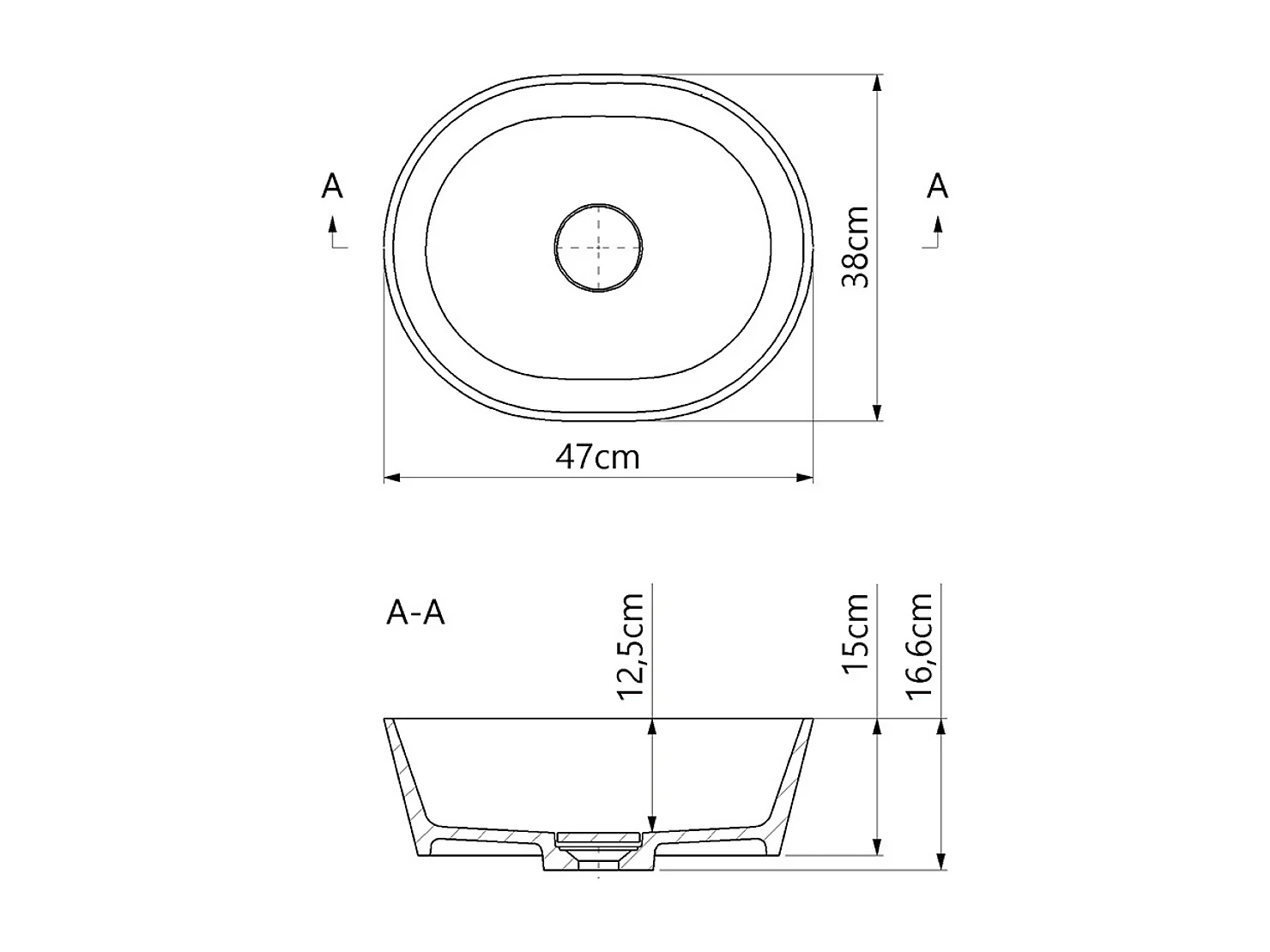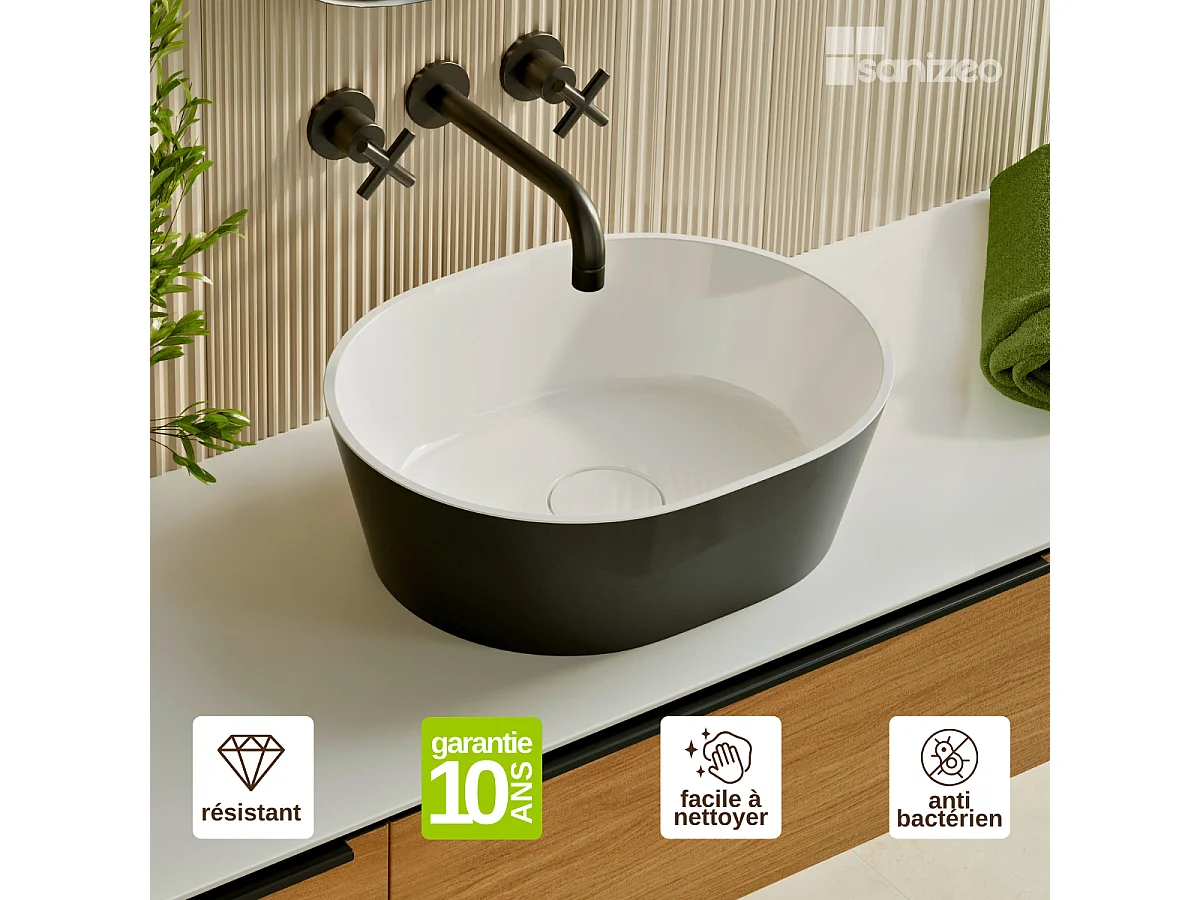 Vasque à poser KARIN - 75% Minéral Noir/Blanc Brillant Ovale 59.9*37.9*H16.6cm - LAVABERG