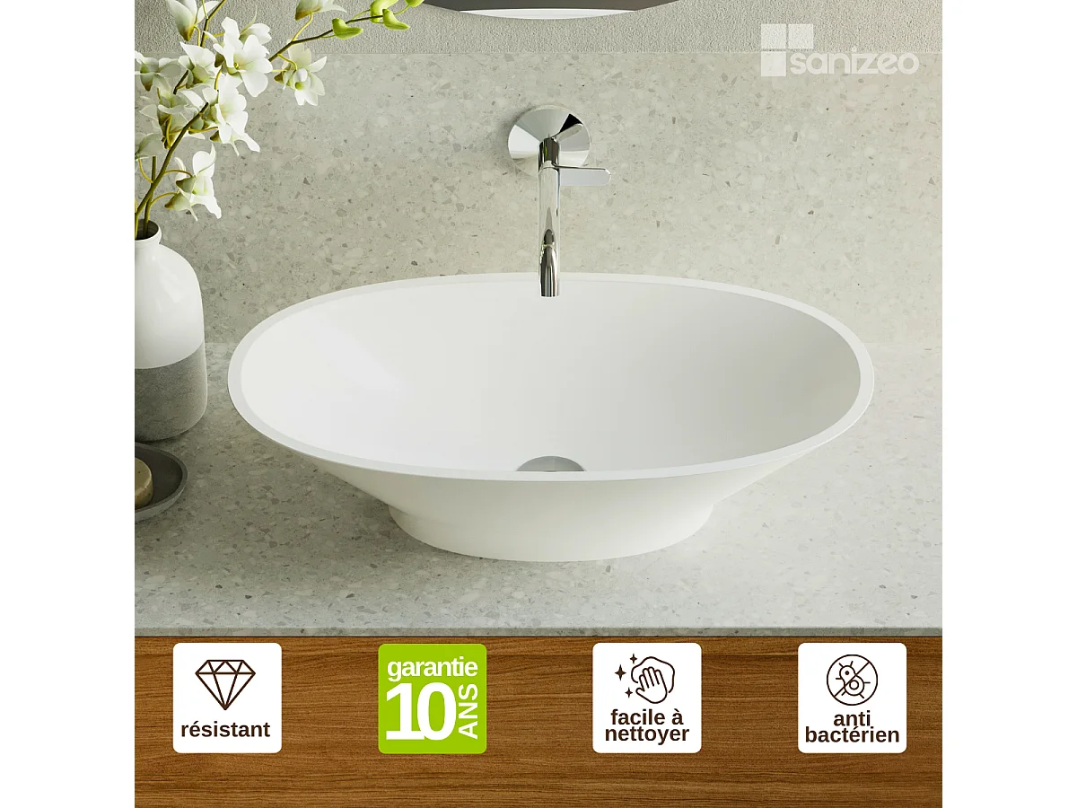 Vasque à poser LARS - 75% Minéral Blanc Mat Ovale 60*35*H16cm - LAVABERG