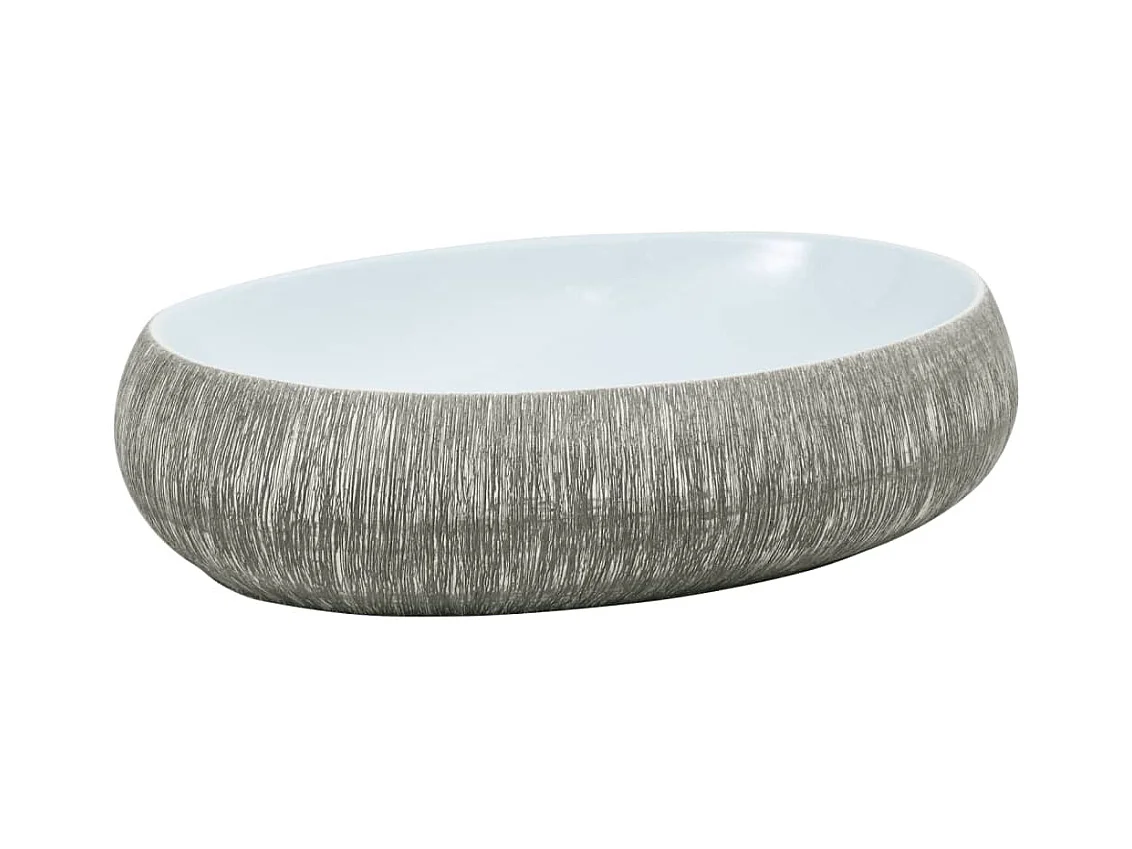Vasque à poser Lavabo | Bac à laver gris et bleu ovale 59x40x15 cm céramique