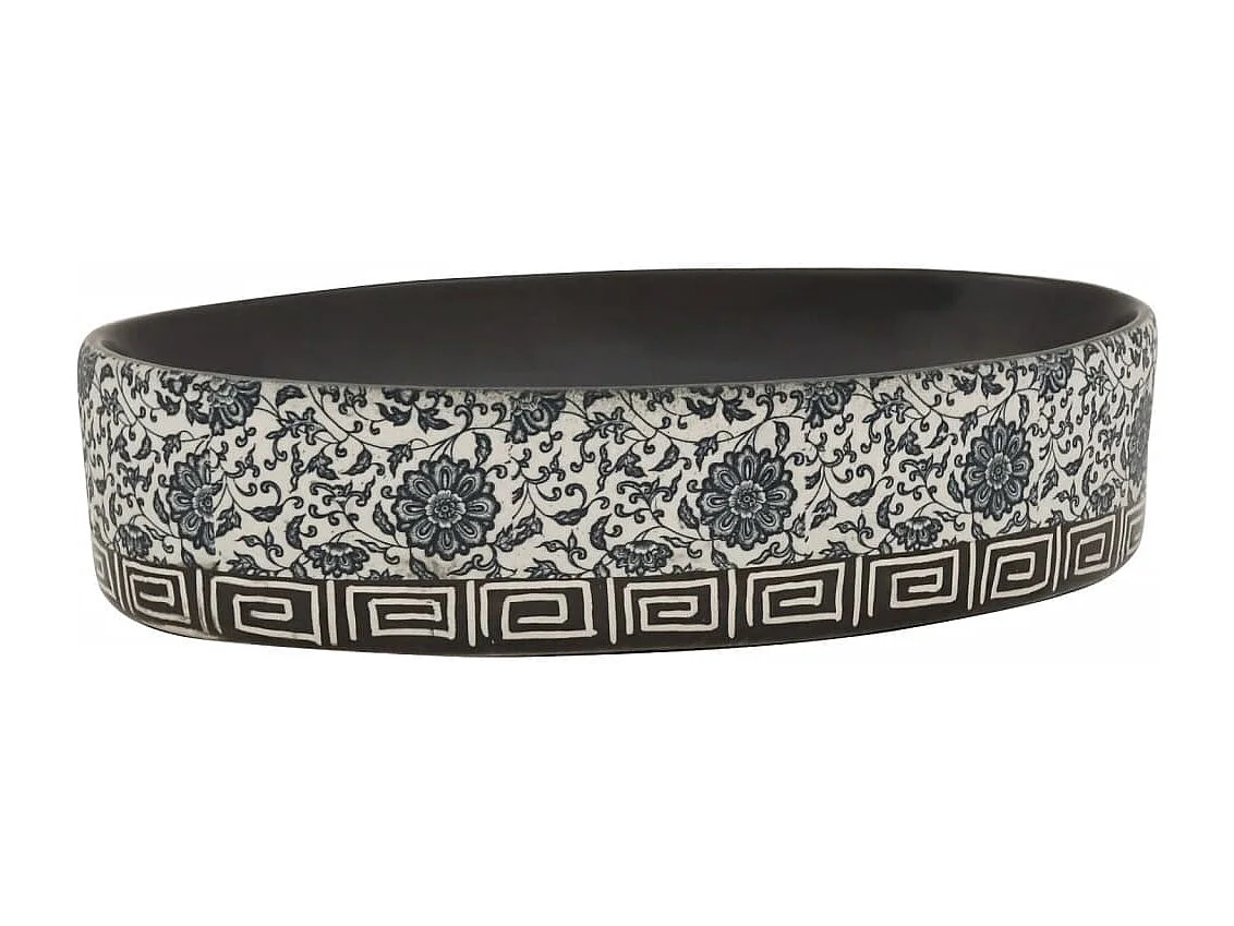 Vasque à poser Lavabo | Bac à laver noir et bleu ovale 56,5x36,5x13,5 cm céramique