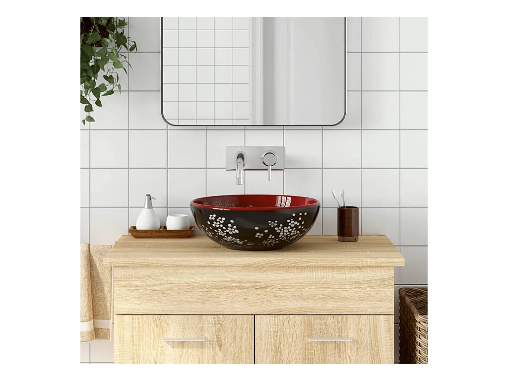 Vasque à poser noir et rouge rond Φ41x14 cm céramique WVGQ2920