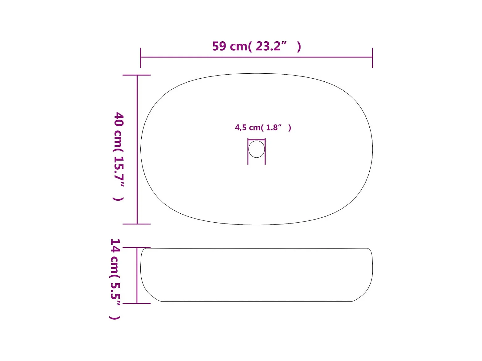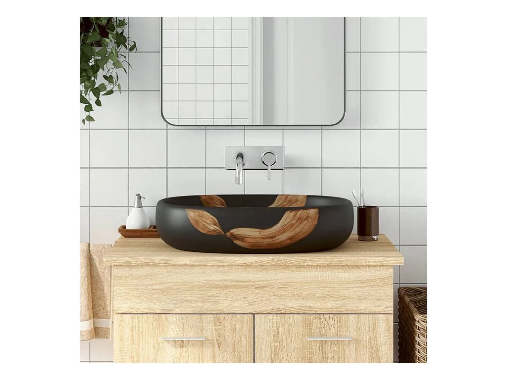 Vasque à poser Lavabo | Bac à laver noir ovale 59x40x14 cm céramique
