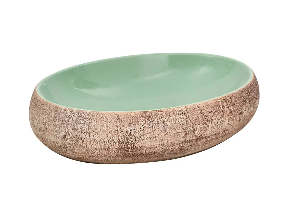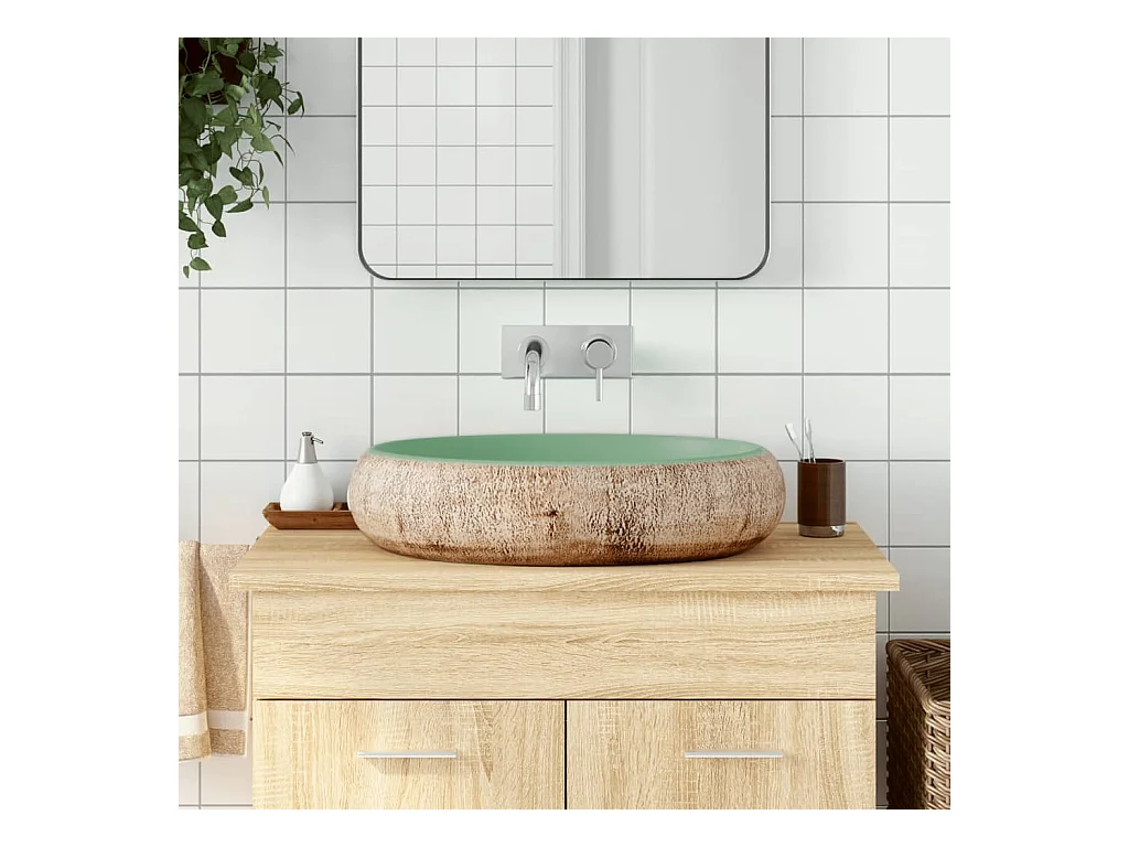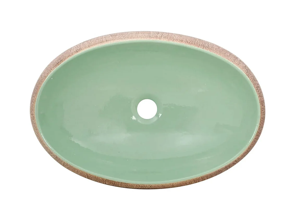 Vasque à poser Lavabo | Bac à laver vert et marron ovale 59x40x15 cm céramique