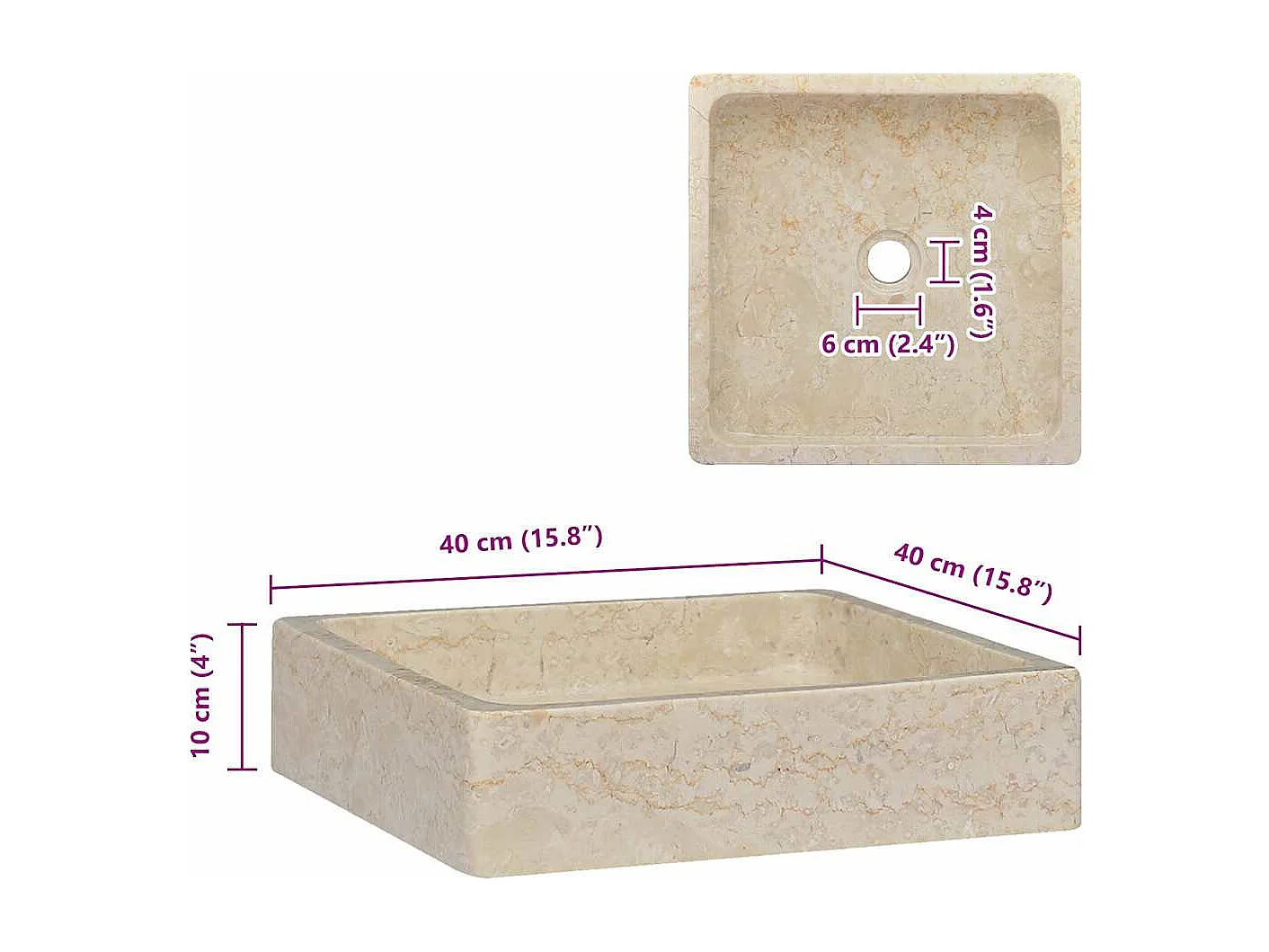 Vasque à poser-Lavabo Crème 40x40x10 cm Marbre