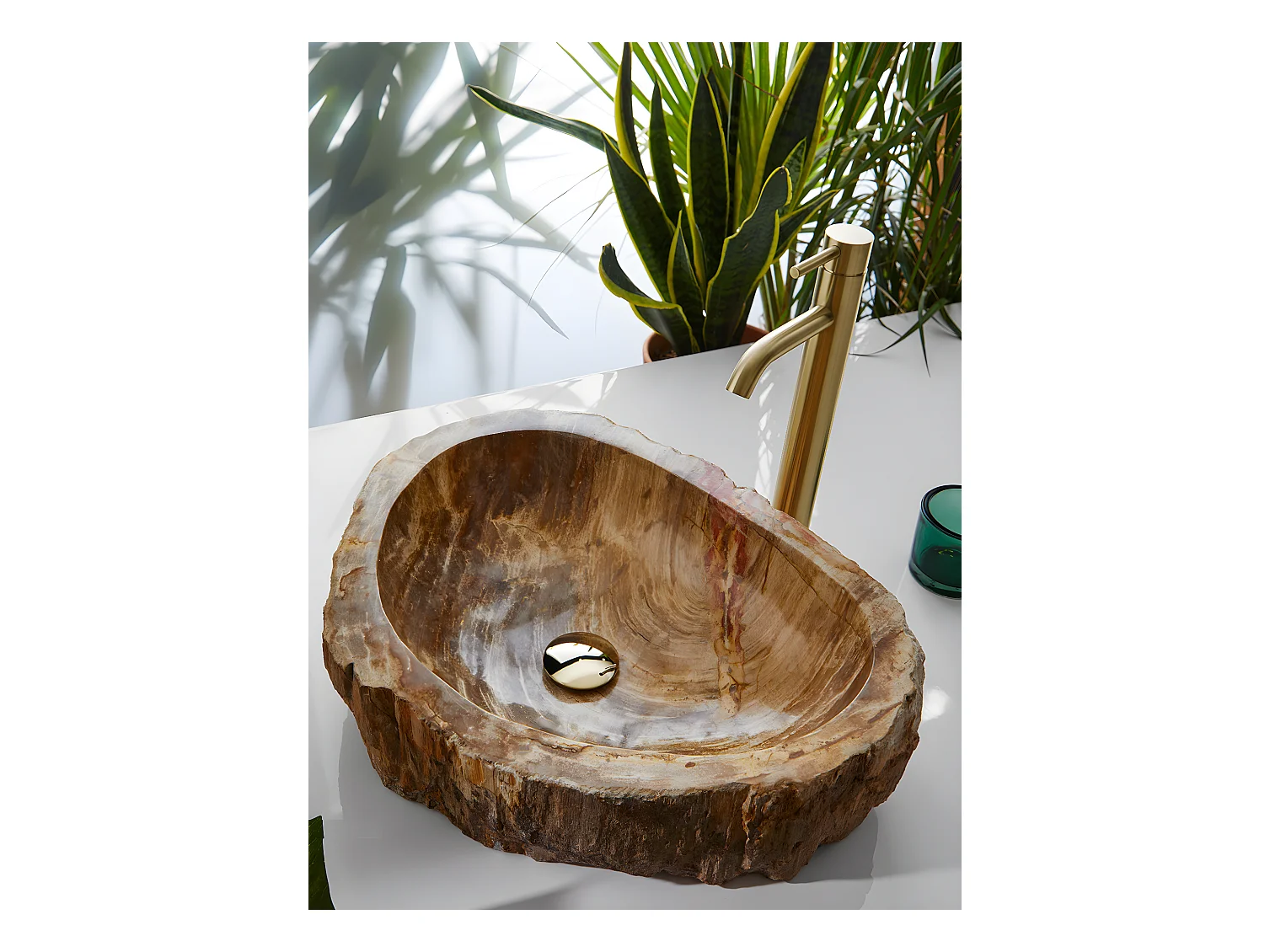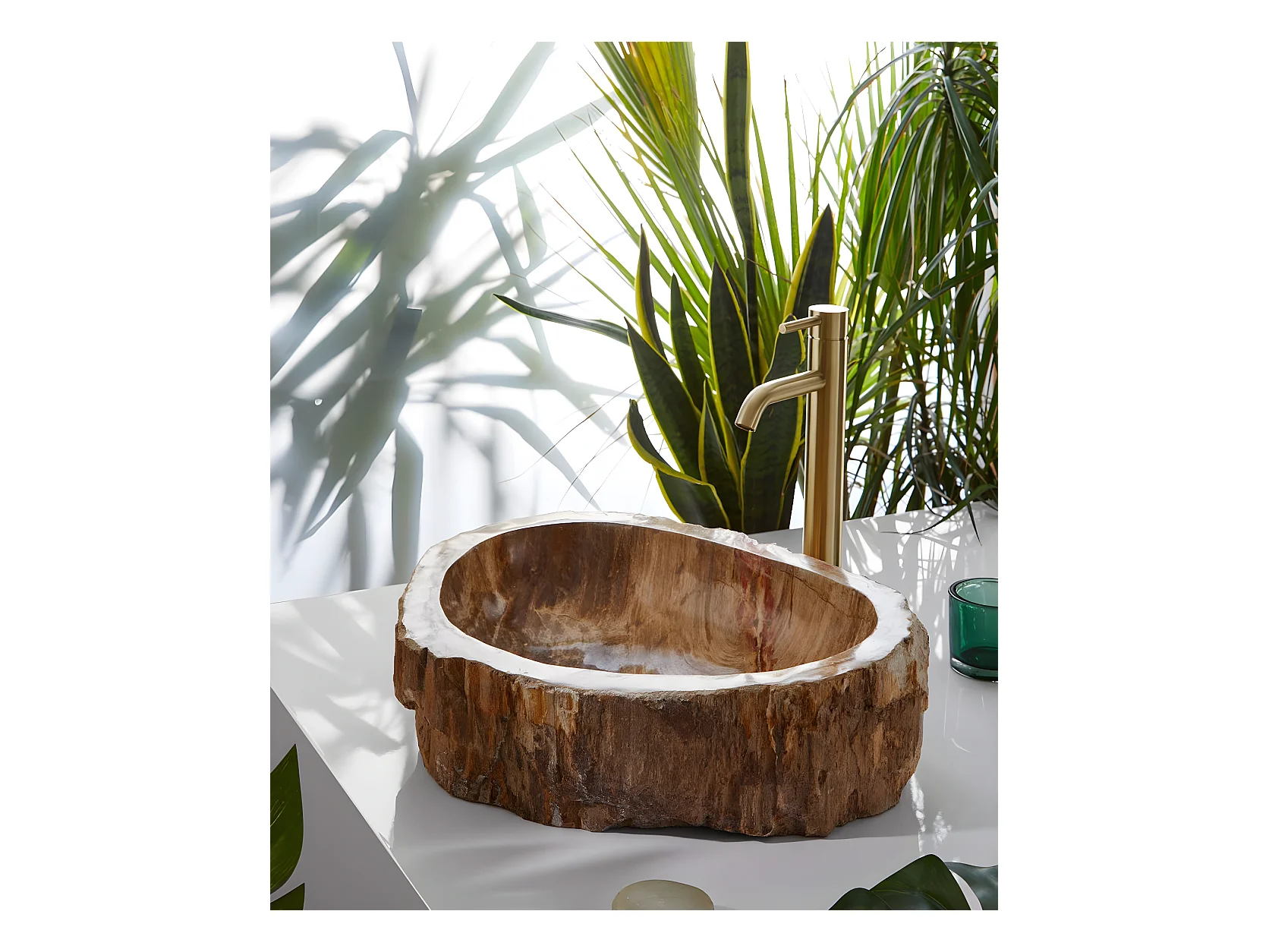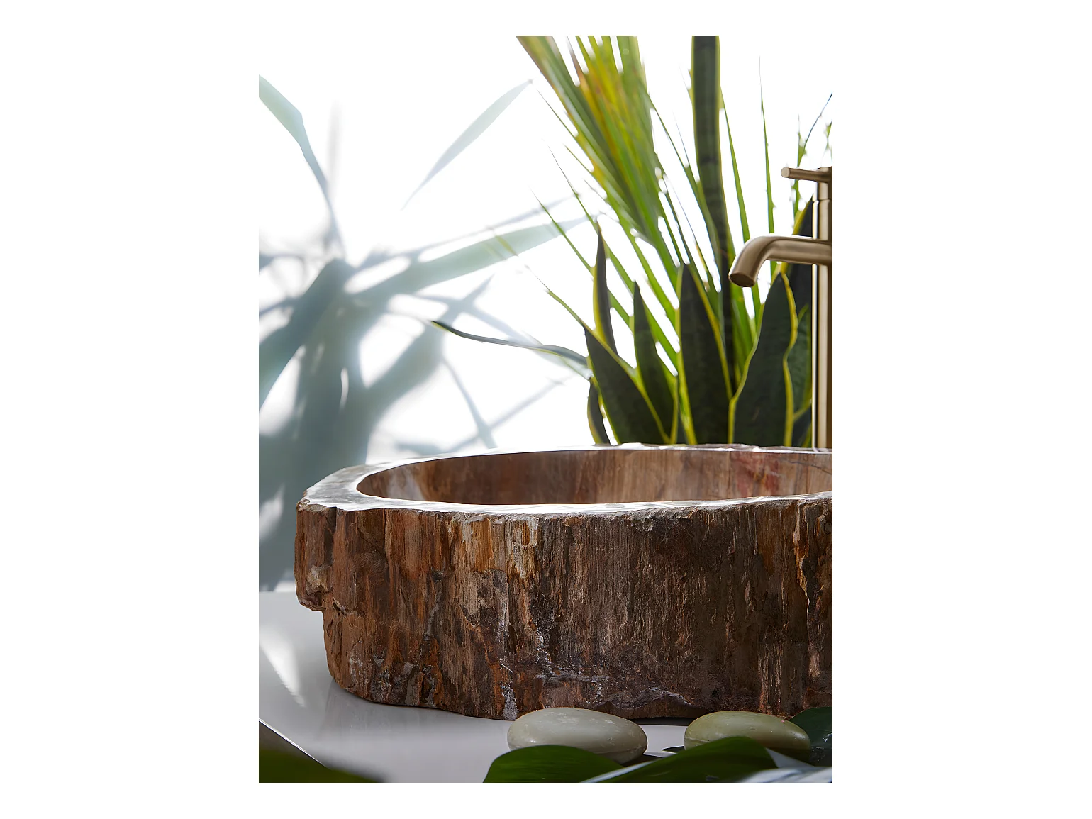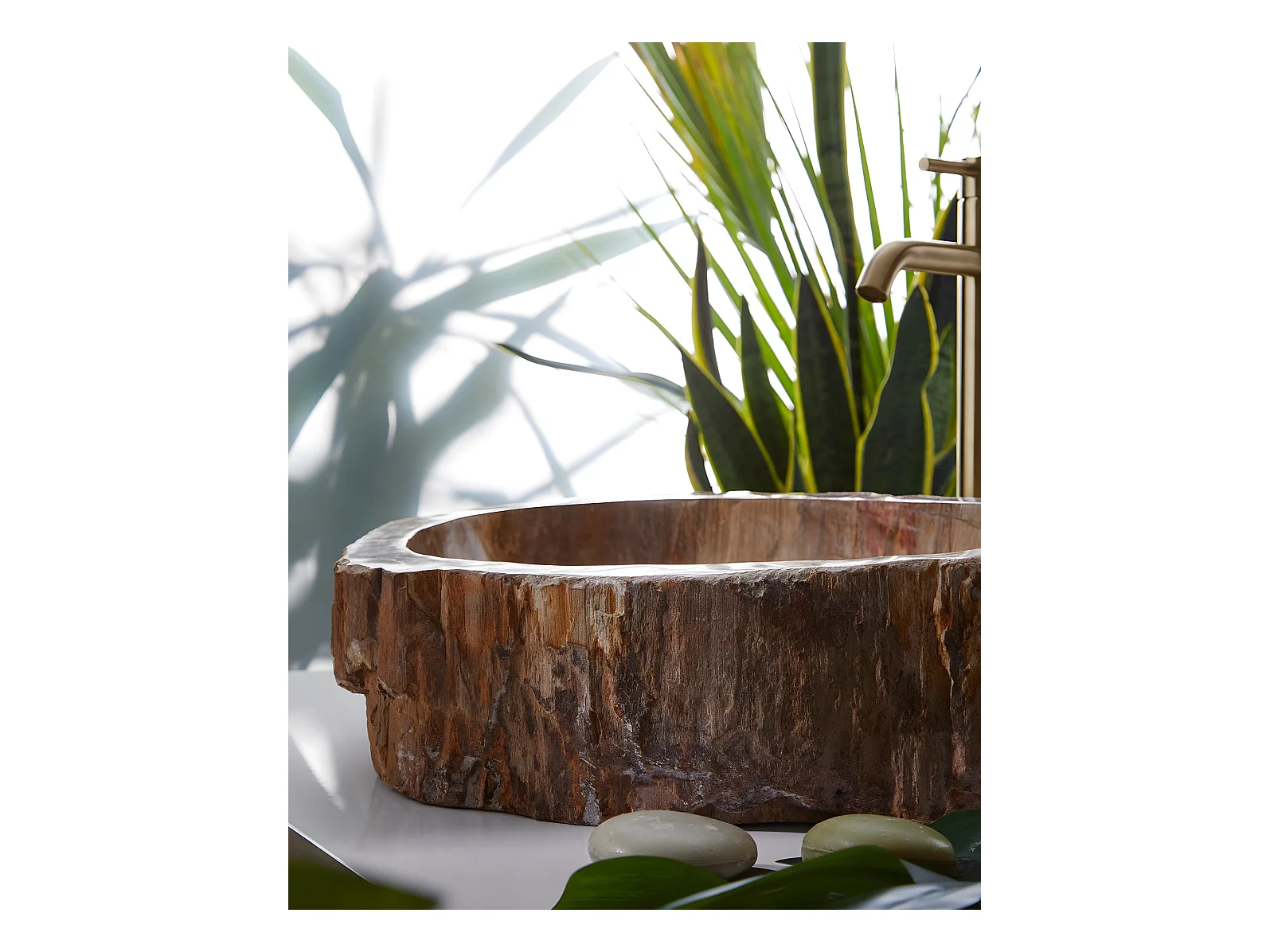 Vasque à poser / lavabo en pierre naturelle coloris brun - Longueur 45 x Hauteur 15 x Profondeur 40 cm