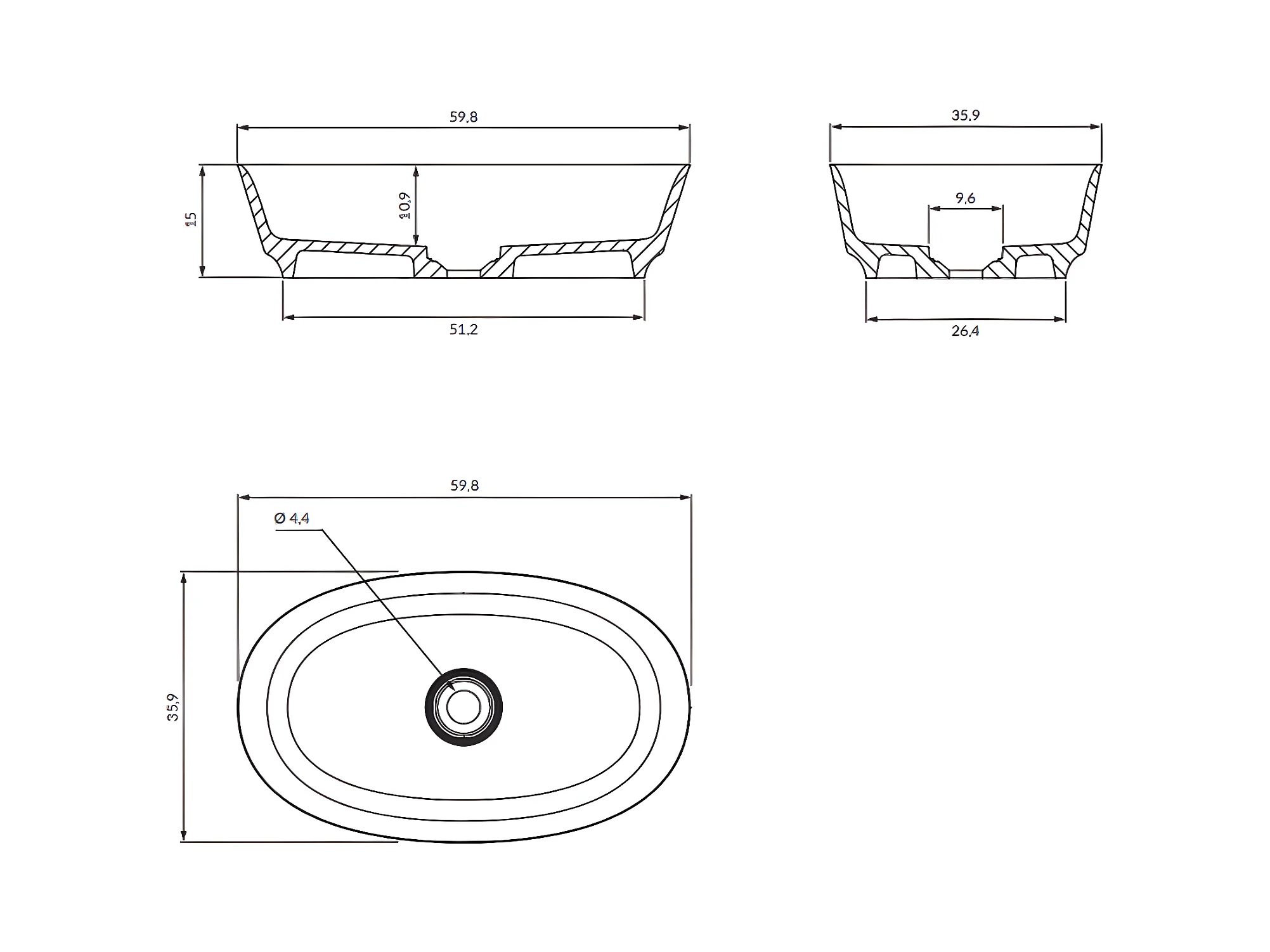 Vasque À poser Neo M+, 60 X 36 Cm.couleur : Blanc Brillant