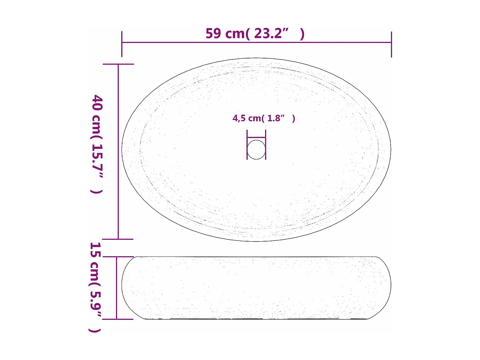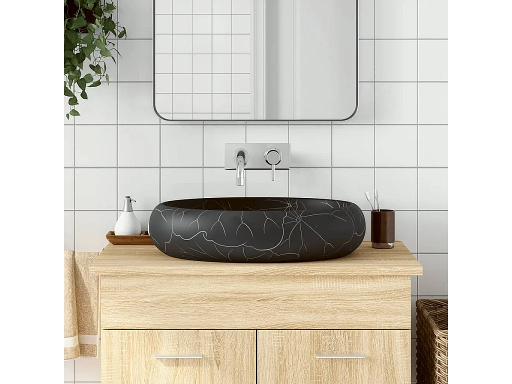 Vasque à poser noir ovale 59x40x15 cm céramique