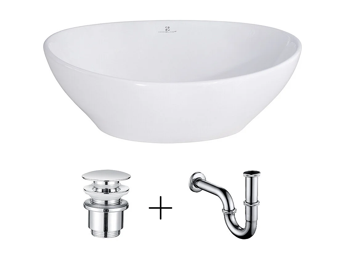 Vasque à Poser Ovale évier de salle de bain en Céramique 41x34 cm, Lavabo blanc avec Bonde Siphon