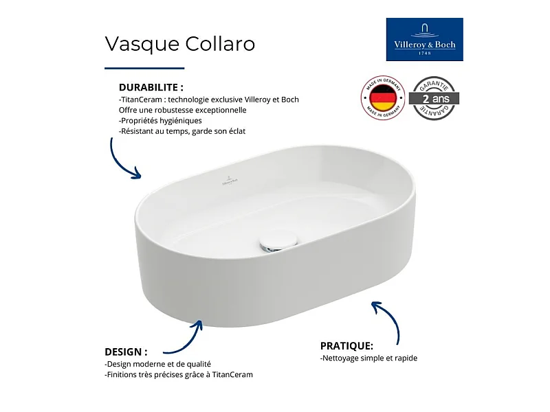 Vasque a poser ovale VILLEROY ET BOCH Collaro Stone White CeramicPlus