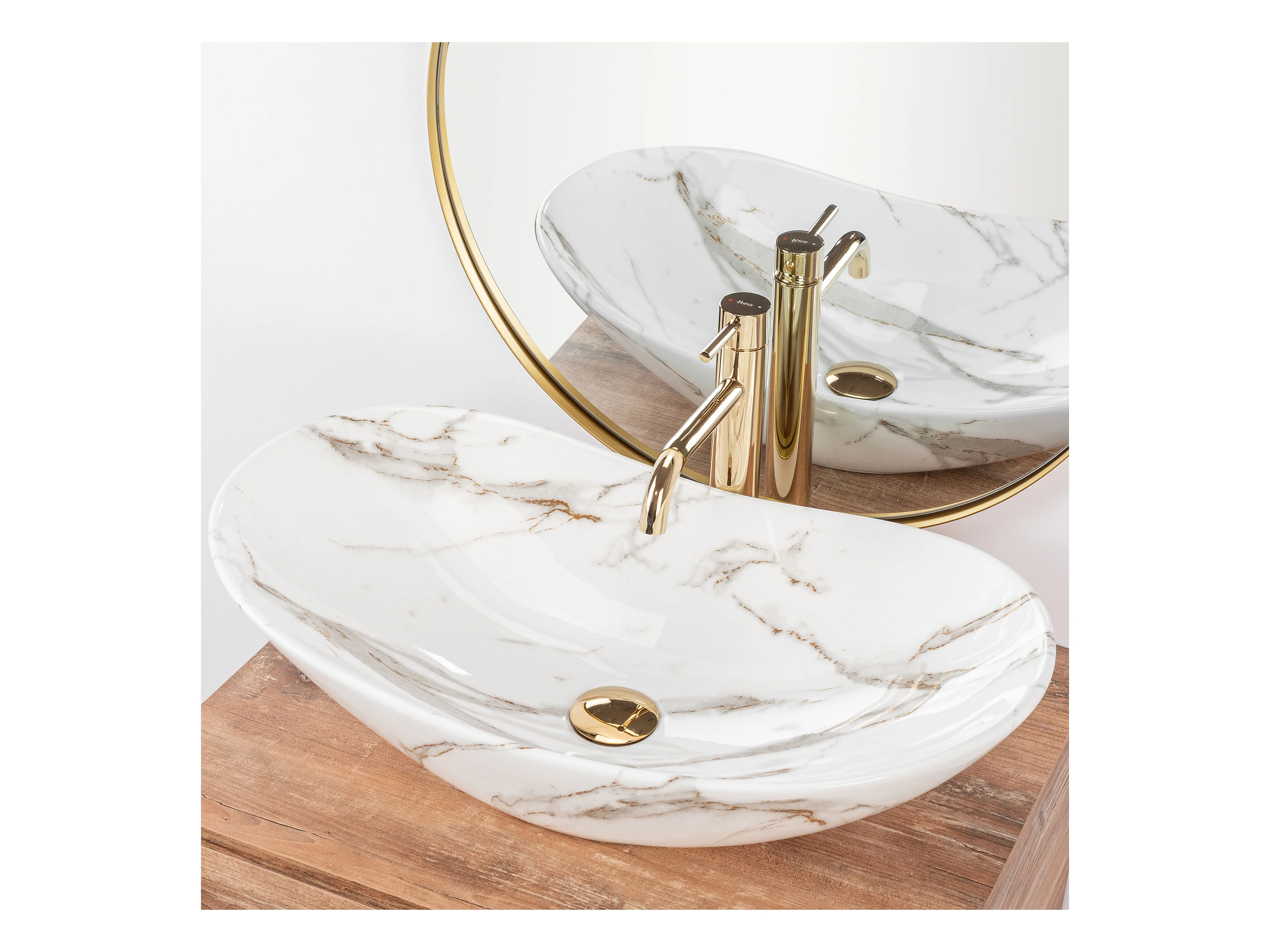 2pcs Robinet de Lavabo Bec Rotation 360°, Mitigeur à Eau Chaude et Froide pour Vasque, Robinet de Salle de Bain avec Barboteur Démotable, Doré
