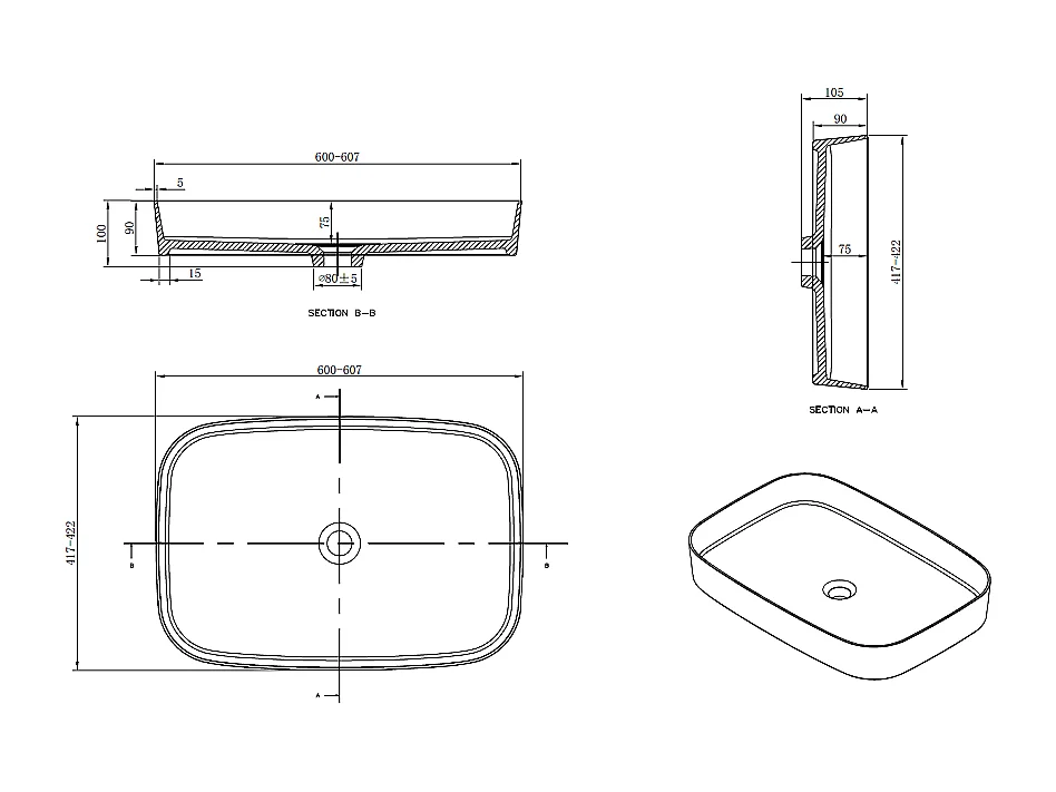 Vasque à poser rectangulaire en marbre de synthèse SIENA 60 x 42 cm