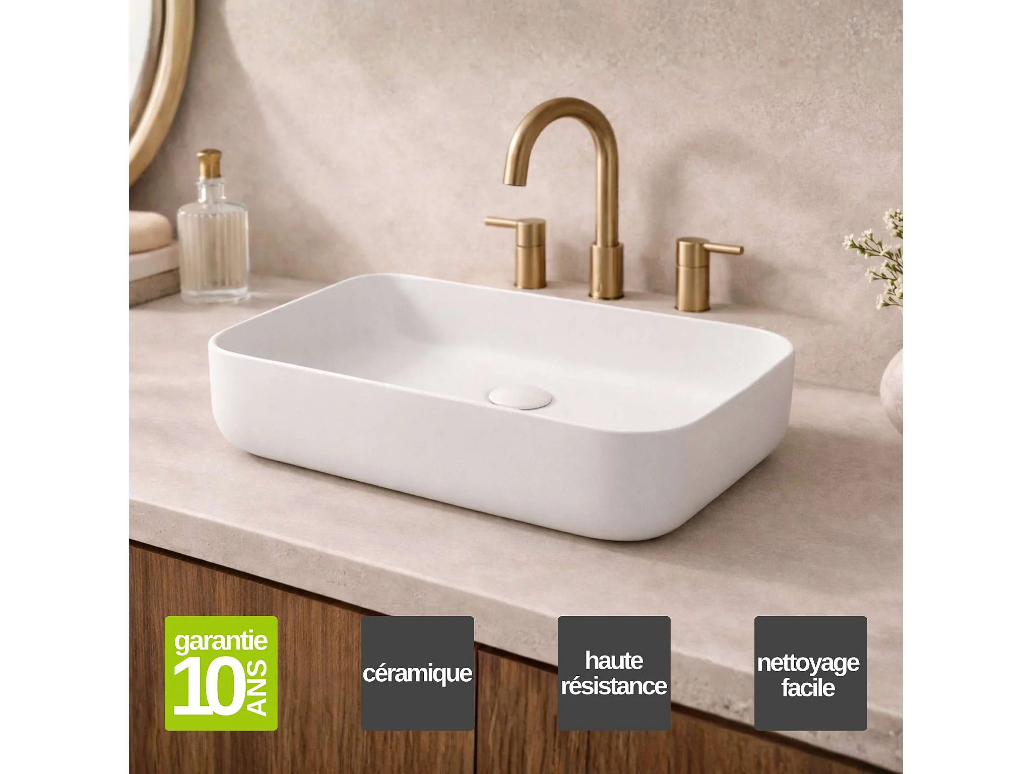 Vasque à poser rectangulaire en céramique blanc mat L50xl39xProfondeur 13cm - SANIZEO Quimera.