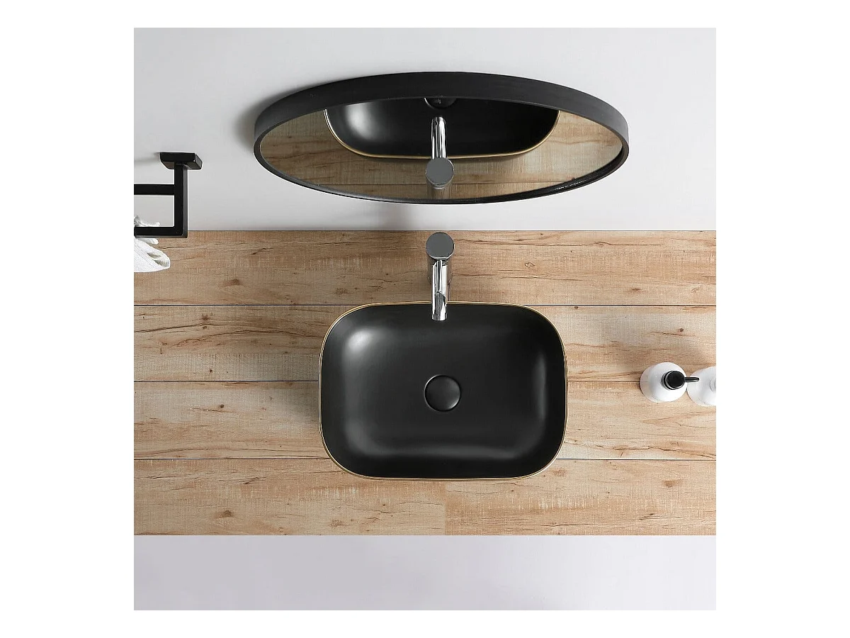 Vasque à poser rectangulaire en céramique CUARTO 3 coloris 45.5 x 32.5 cm Noir mat liseré doré